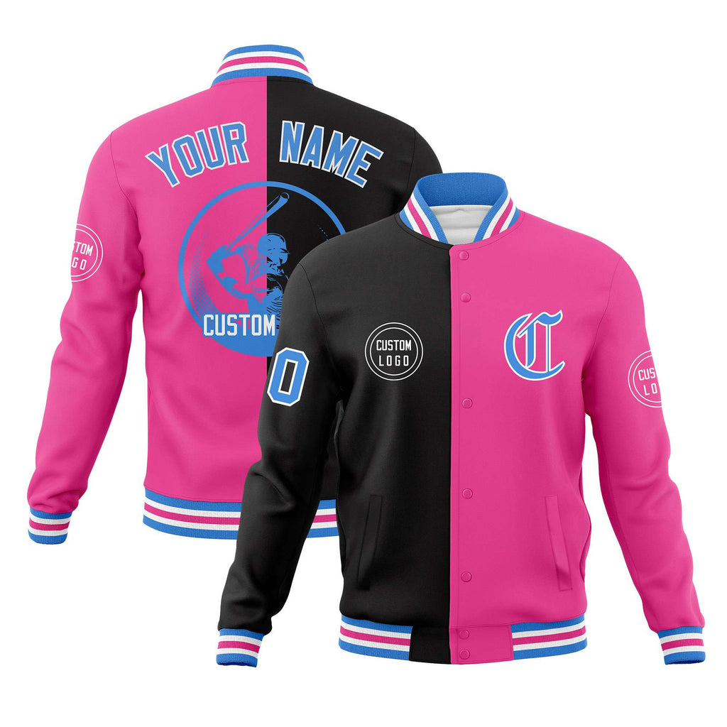 Custom Black Pink Varsity Full-Snap Split Letterman Baseball Jacket