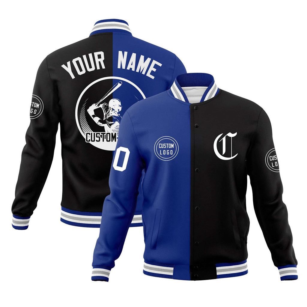 Custom Royal Black Varsity Full-Snap Split Letterman Baseball Jacket