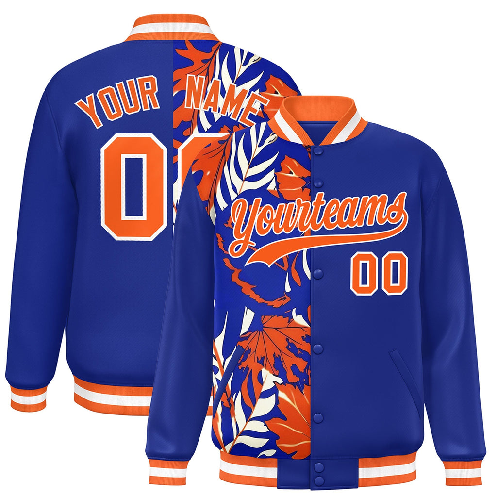 Custom Royal Varsity Full-Snap Flower Pattern Letterman Two Tone Split Fashion Jacket