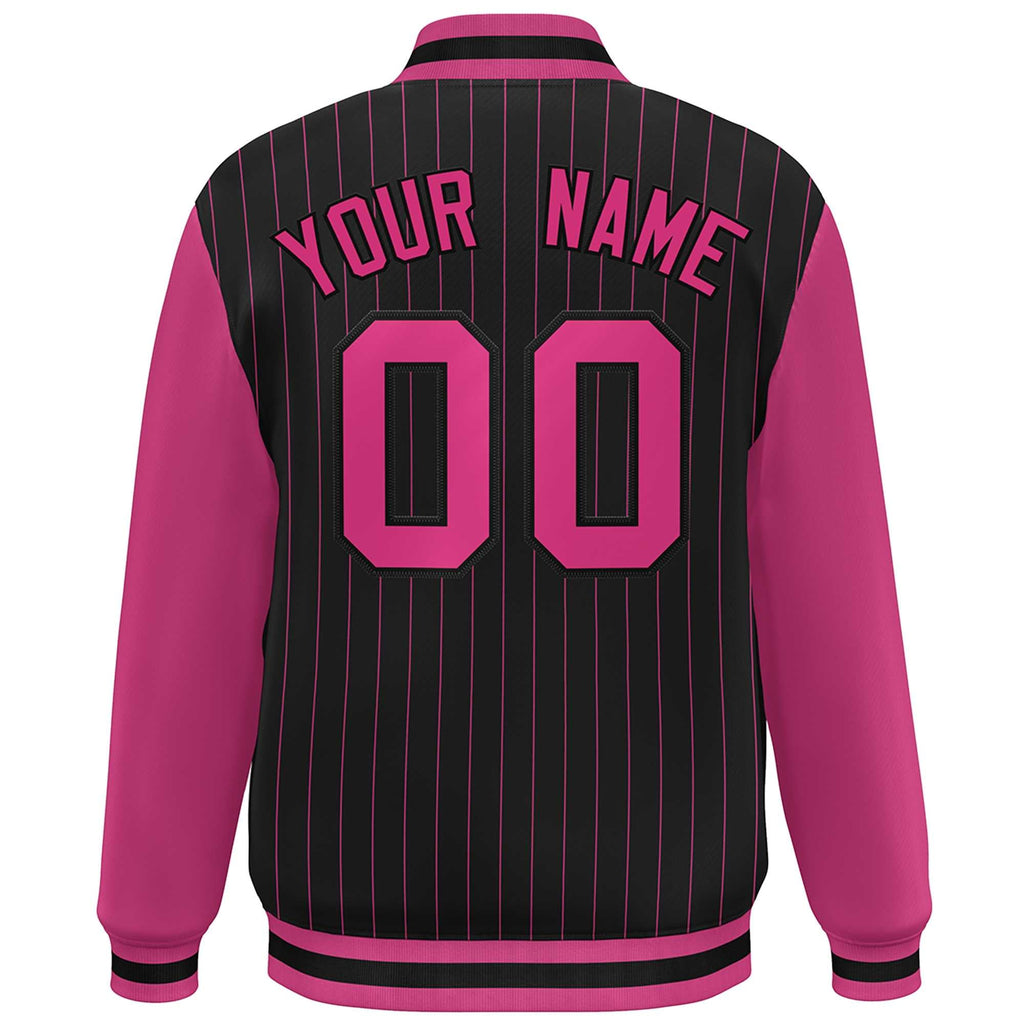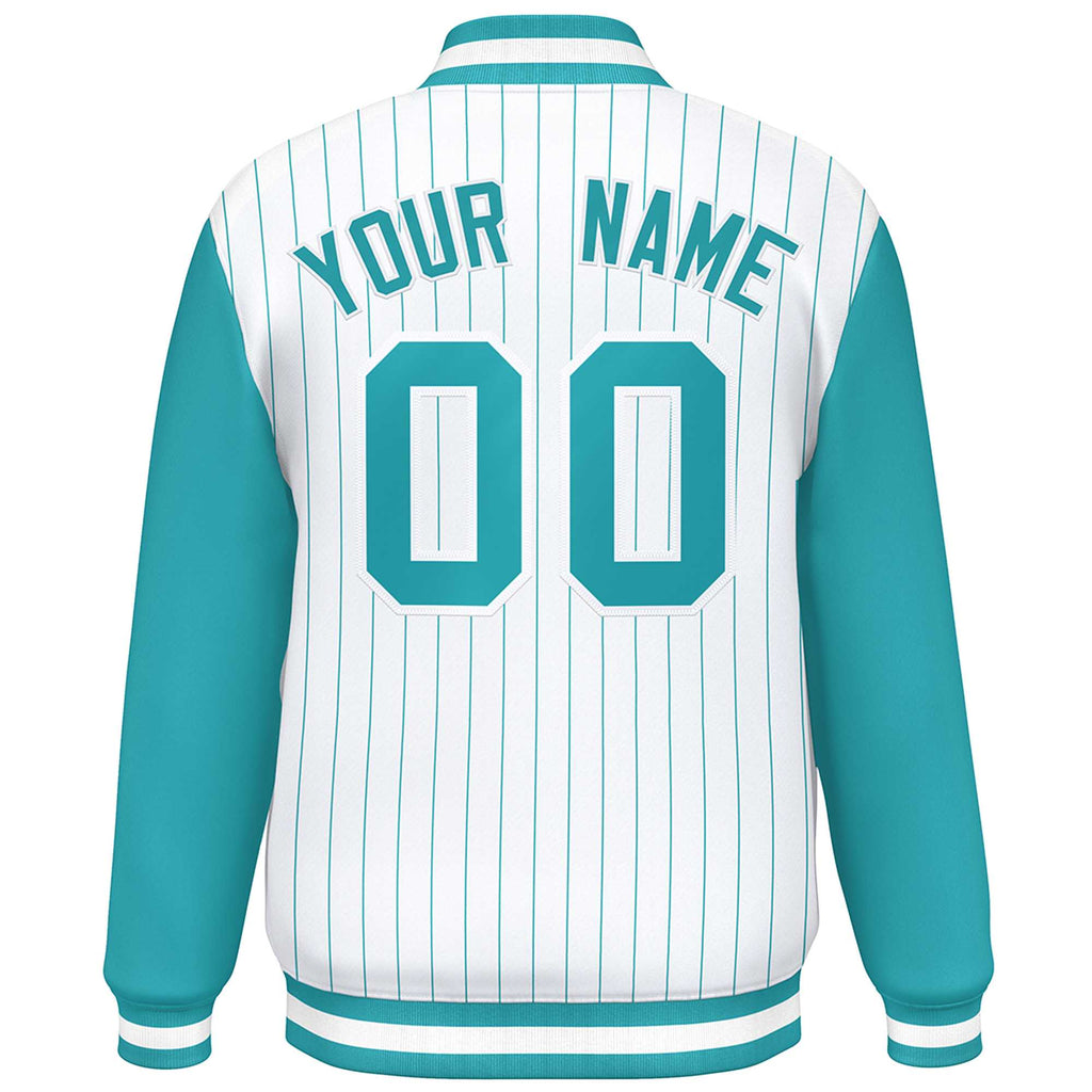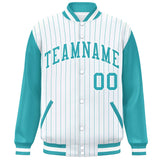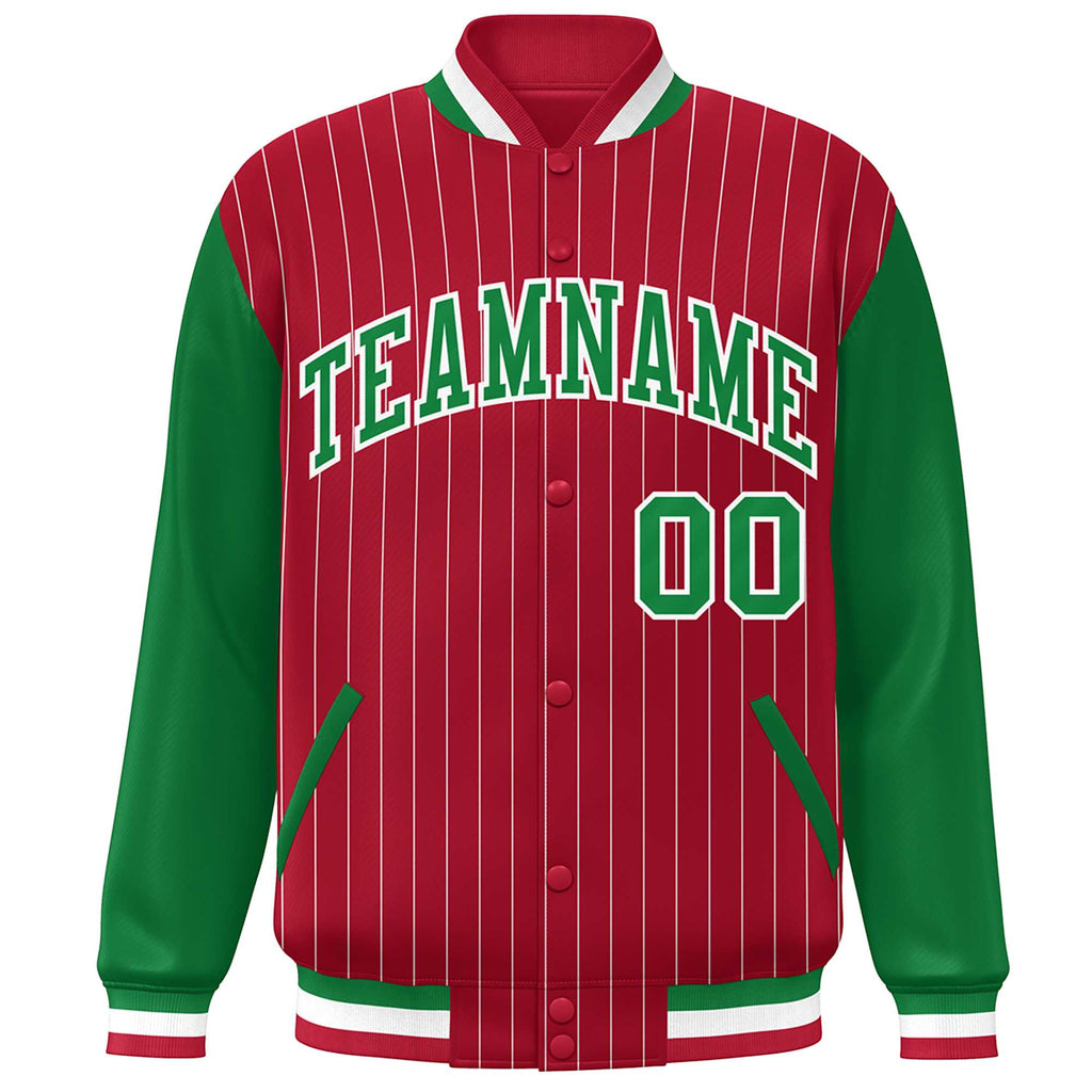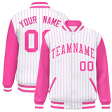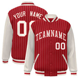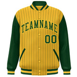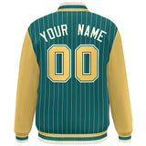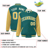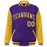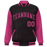 Custom Full-Snap Stripe Fashion Letterman Bomber Jacket Stitched Text Logo Big Size