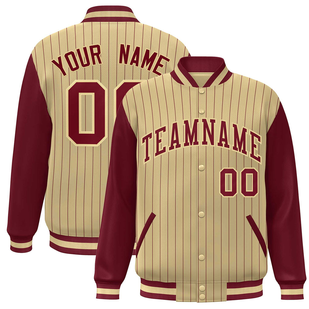 Custom Full-Snap Stripe Fashion Letterman Jackets Stitched Text Logo for Adult