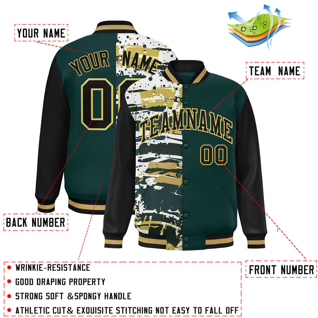 Custom Midnight Green Black Varsity Full-Snap Graffiti Pattern Letterman Baseball Jacket