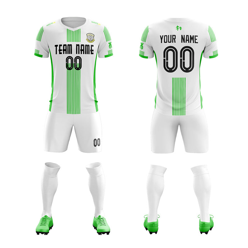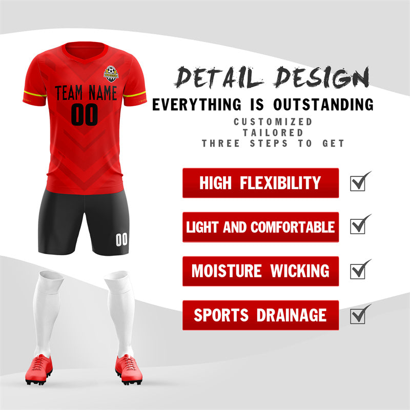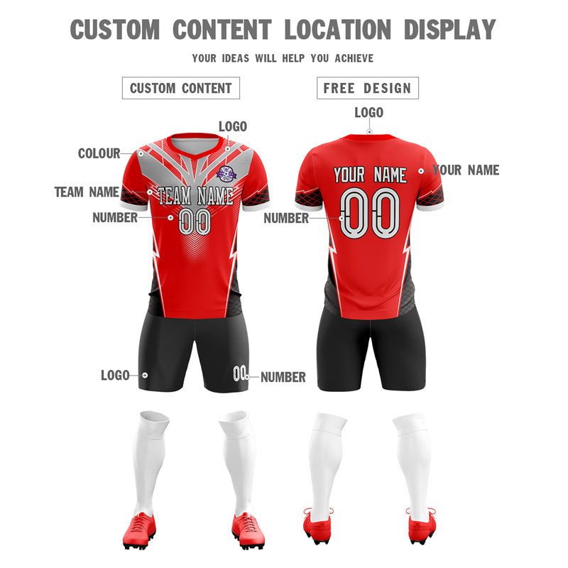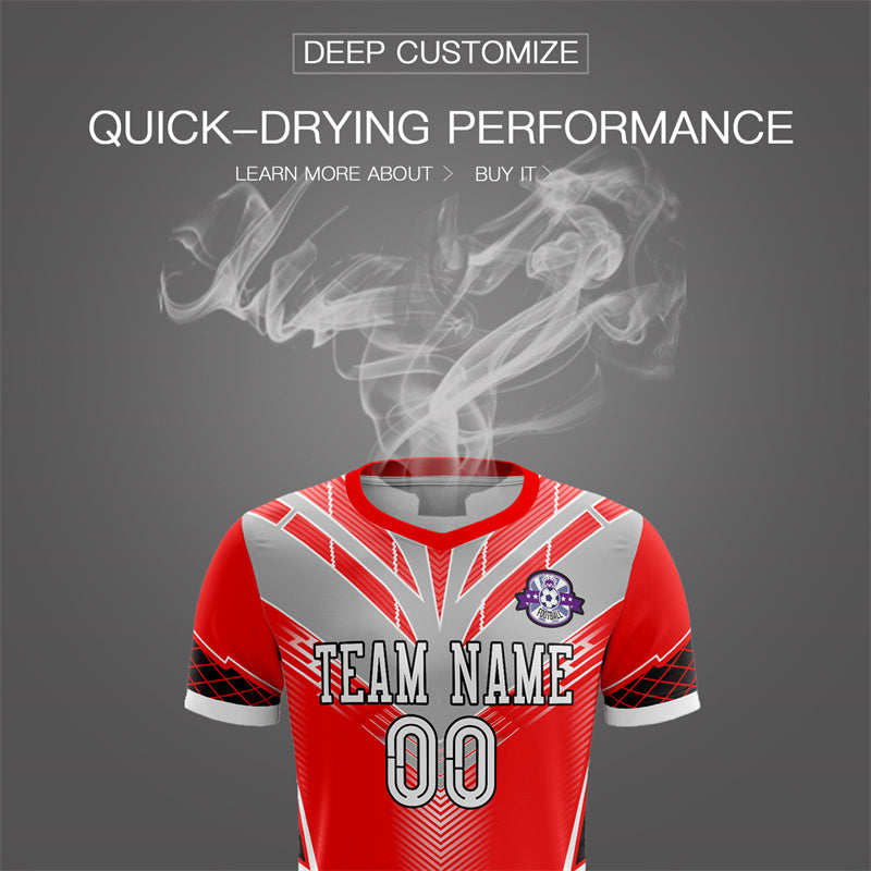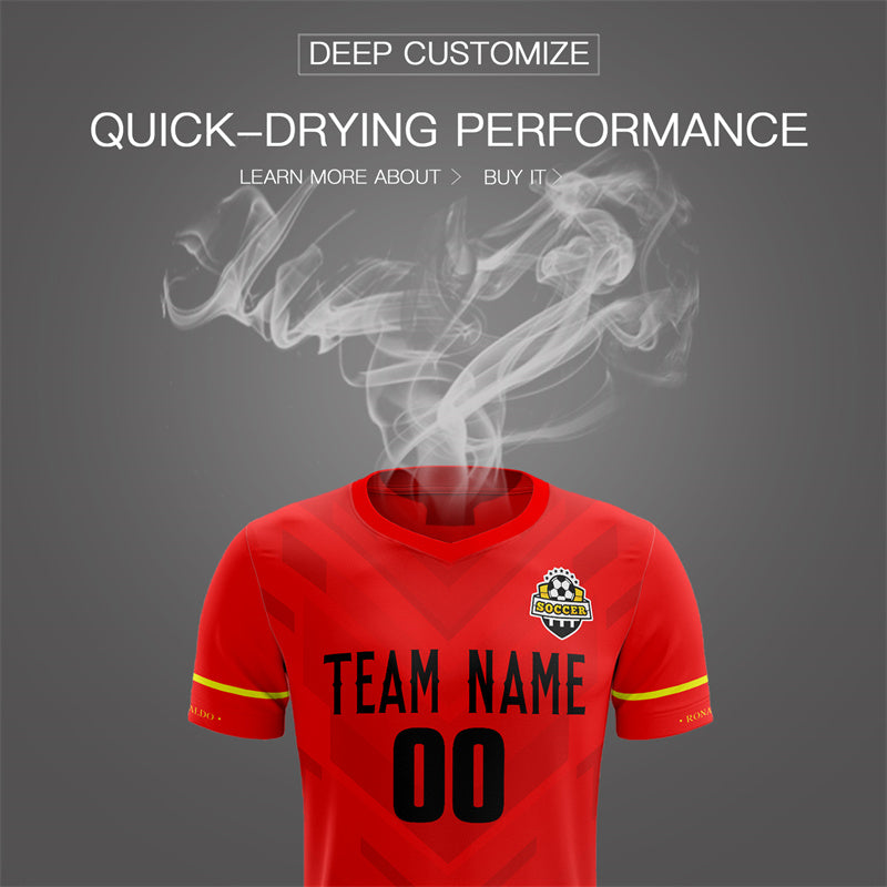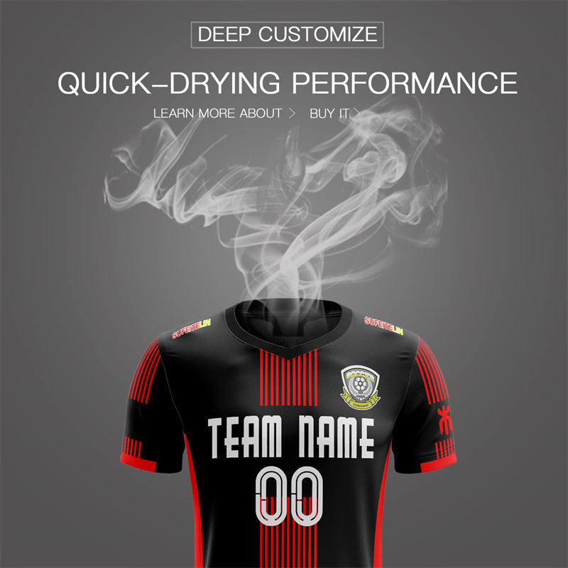 The jersey fabric is 82% polyester, 18% spandex. Shorts in 6% spandex, 94% polyester. High elasticity, lightweight comfort, moisture wicking, sports drainage, quick drying performance.