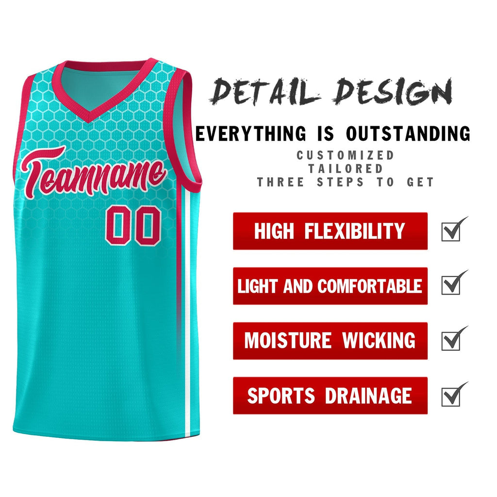 Custom Aqua Personalized Honeycomb Pattern Sports Uniform Basketball Jersey