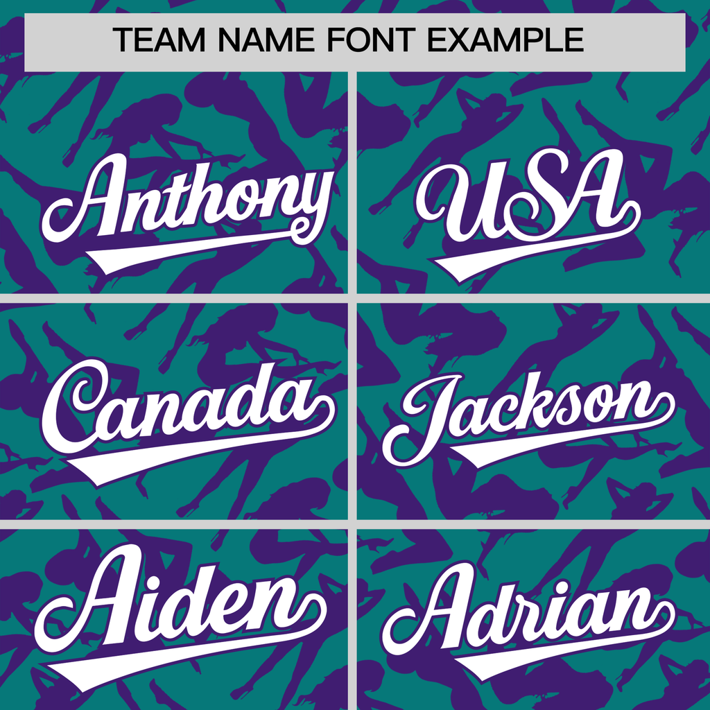 Custom Aqua Purple Playboy Graffiti Pattern Authentic Baseball Jersey