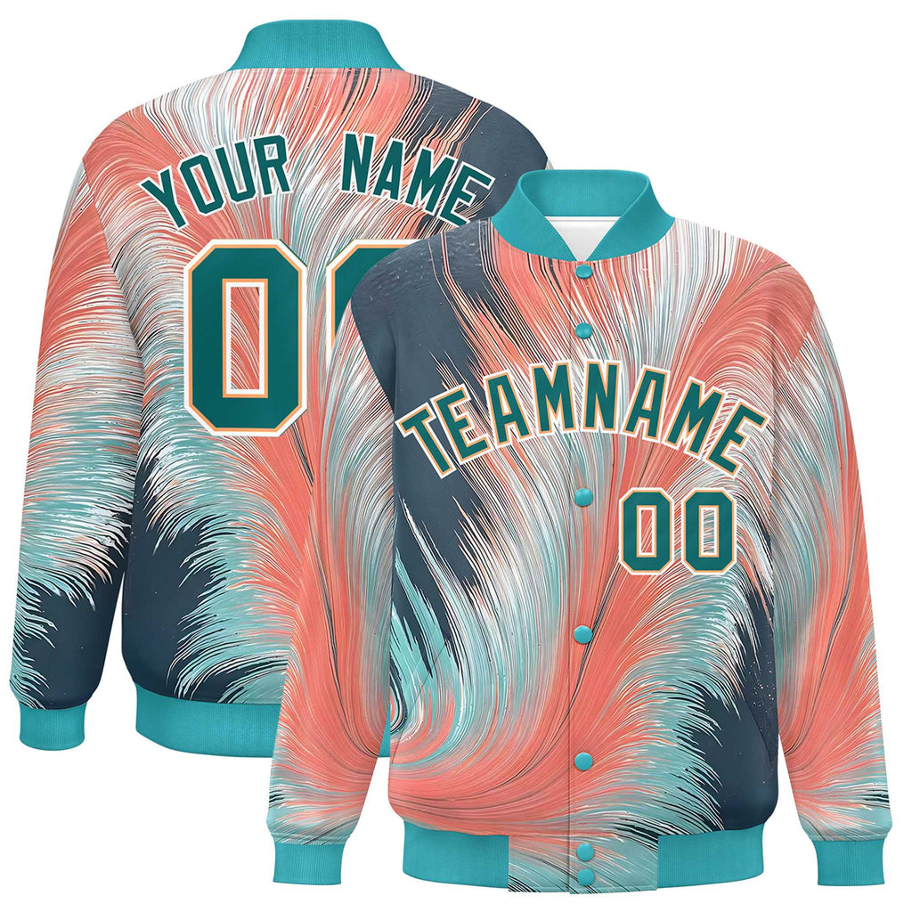 Custom Aqua Varsity Full-Snap Feather Fluid Pattern Letterman Baseball Jacket