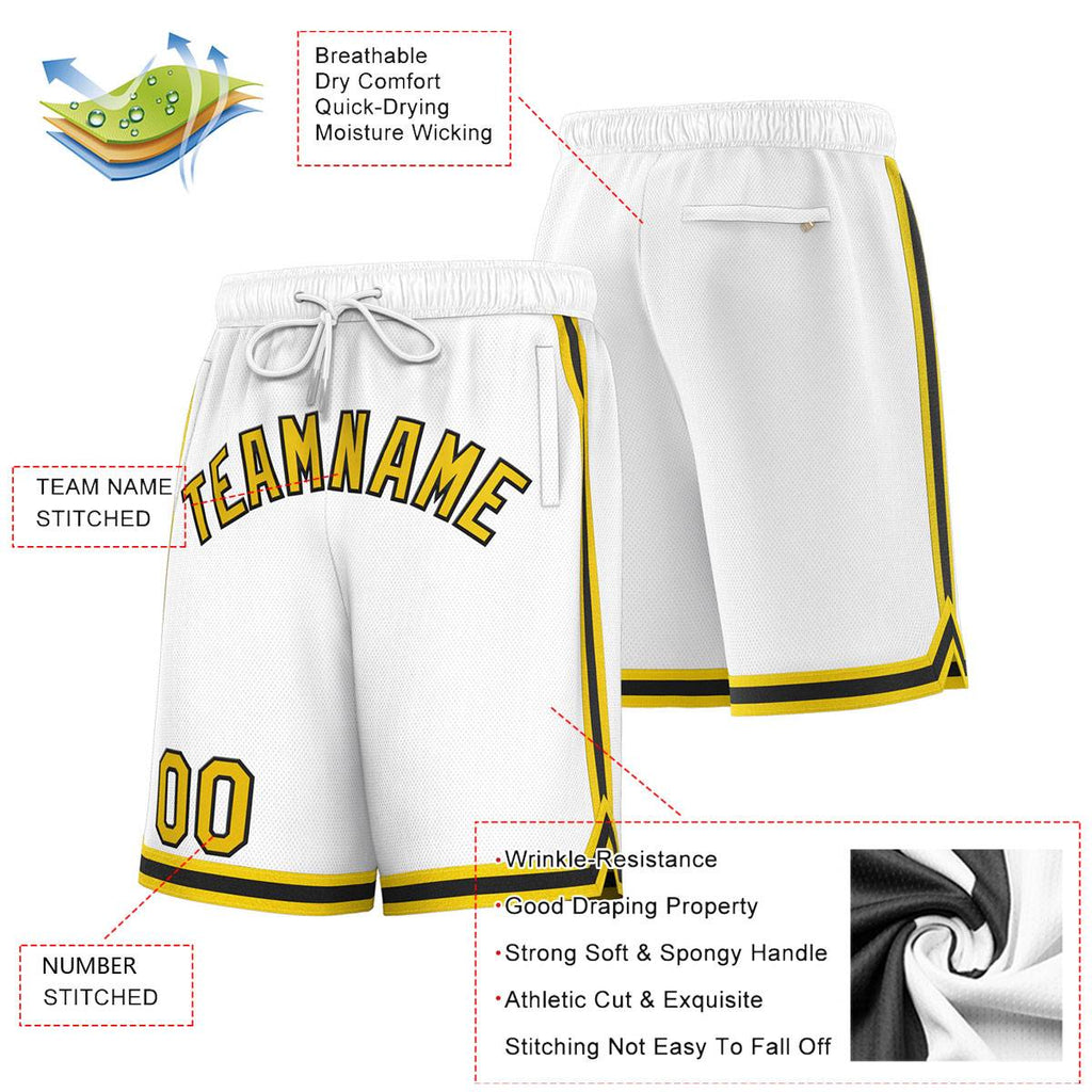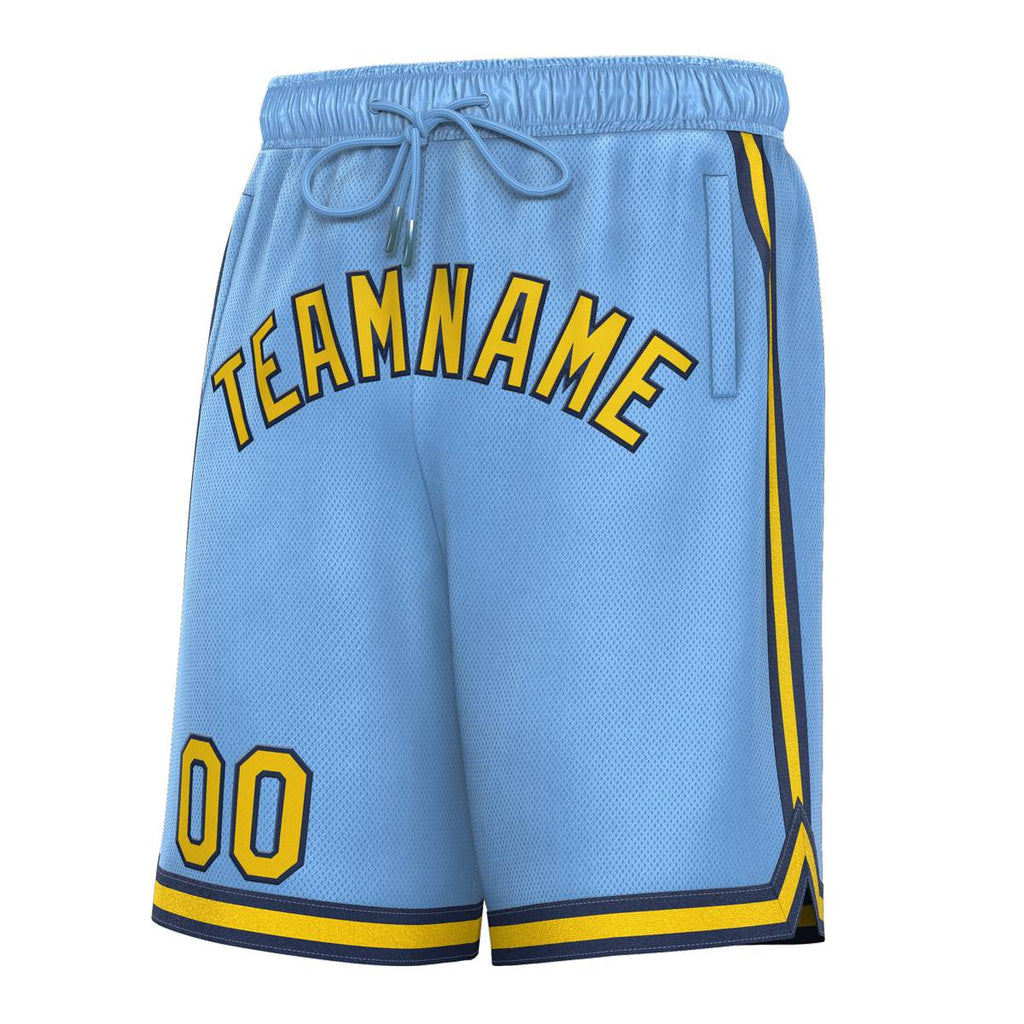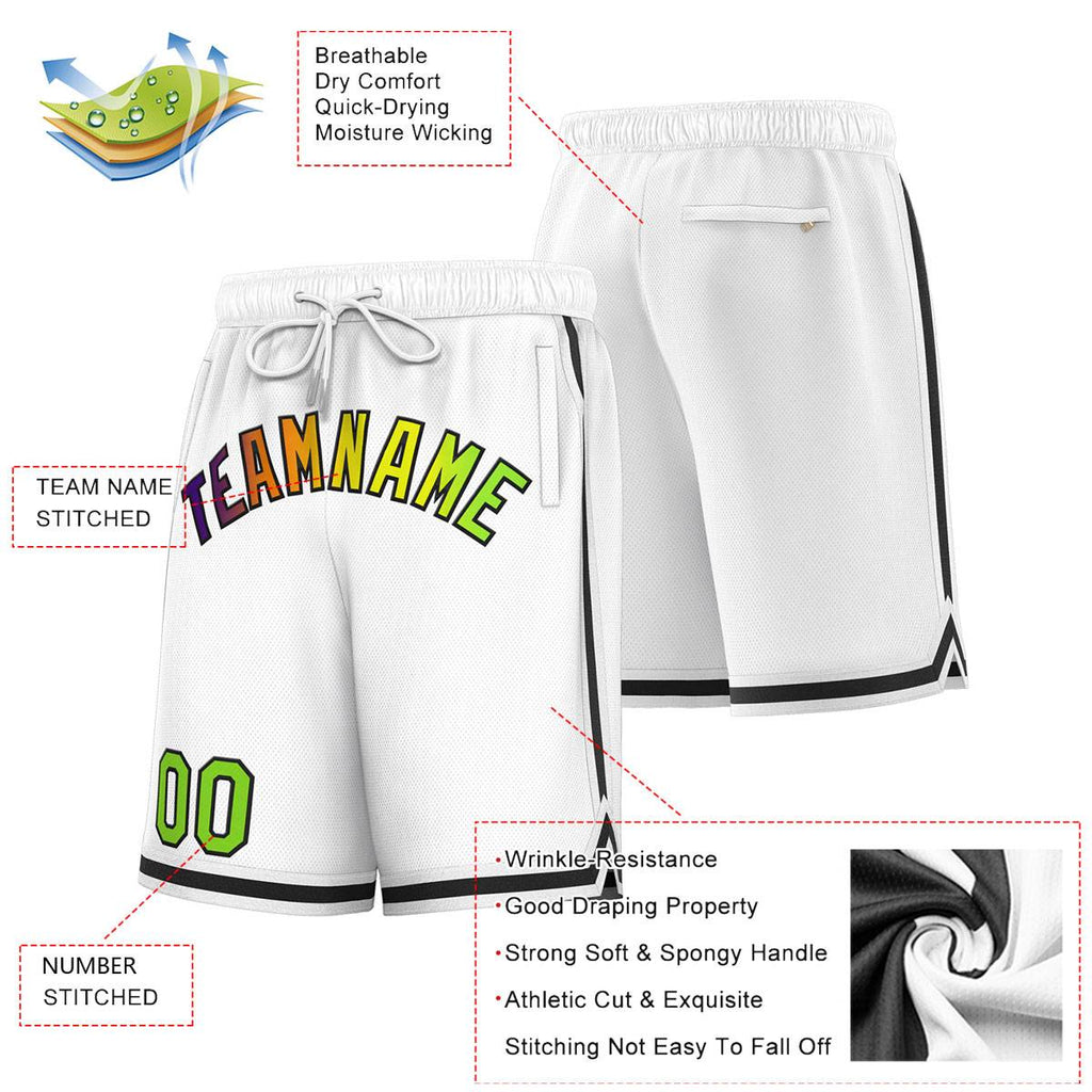Cheer on the custom fashion basketball shorts. These shorts feature custom name number and a comfortable elastic waistband. Whether hitting the town or sinking into the couch, these shorts will perfectly finish any sports fashion look.