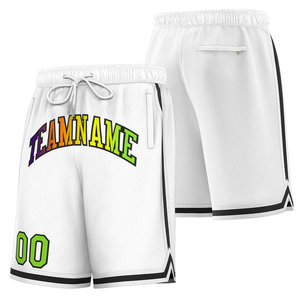 Cheer on the custom fashion basketball shorts. These shorts feature custom name number and a comfortable elastic waistband. Whether hitting the town or sinking into the couch, these shorts will perfectly finish any sports fashion look.