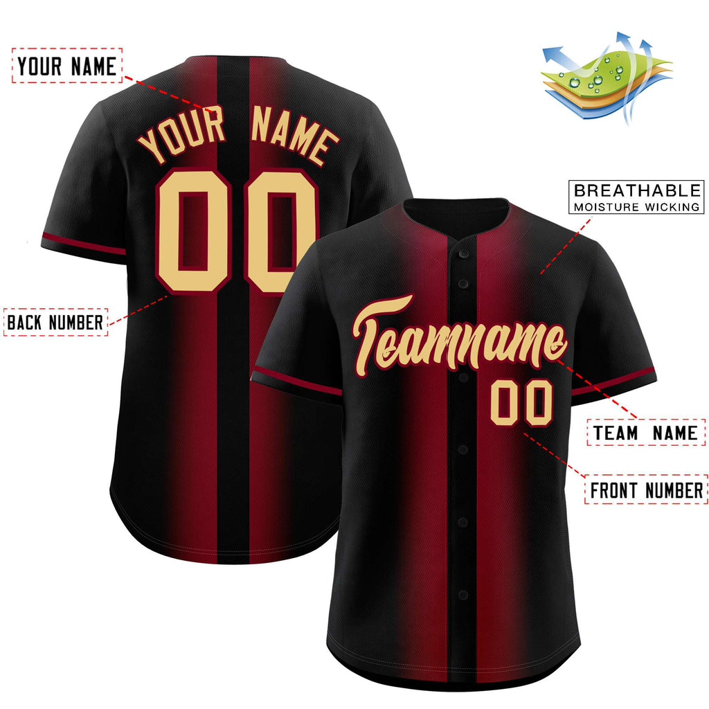 Custom Black Crimson Lapel Gradient Fashion Authentic Baseball Jersey