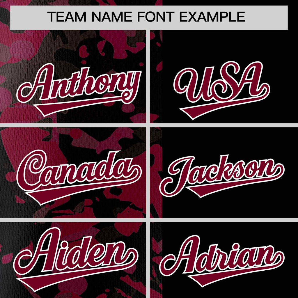 Custom Black Crimson Split Personalized Graffiti Raglan Sleeve Authentic Baseball Jersey