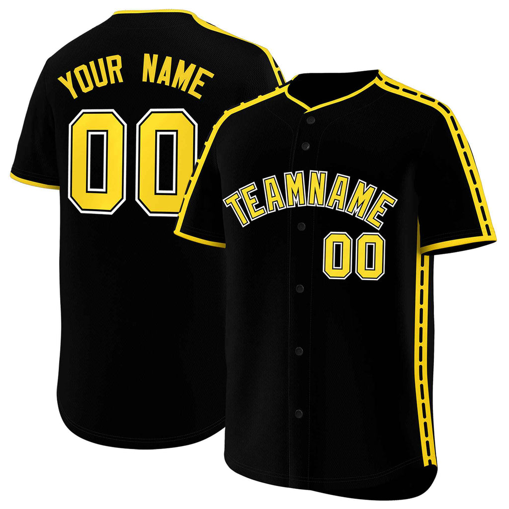 Custom Black Gold Color Block Personalized Side Dotted Line Authentic Baseball Jersey