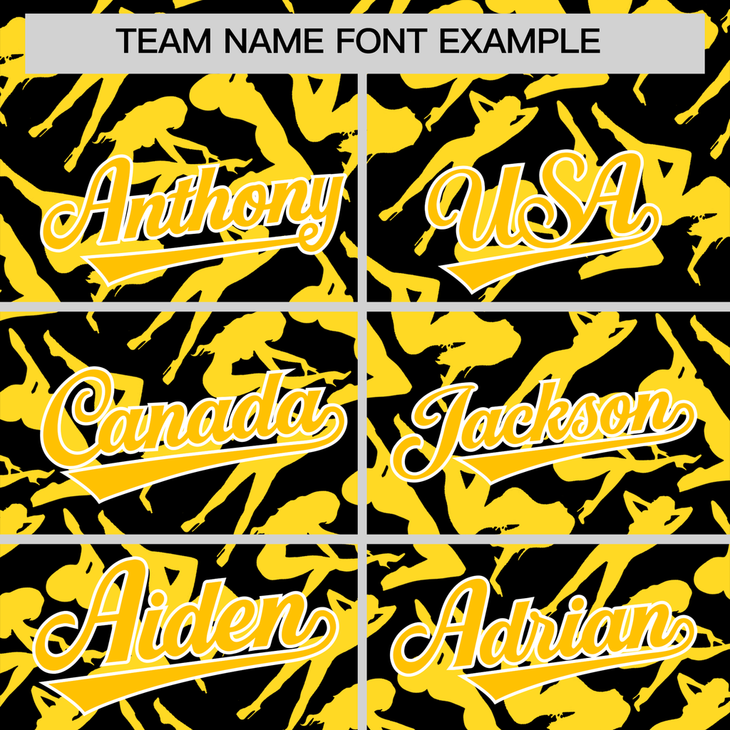 Custom Black Gold Playboy Graffiti Pattern Authentic Baseball Jersey