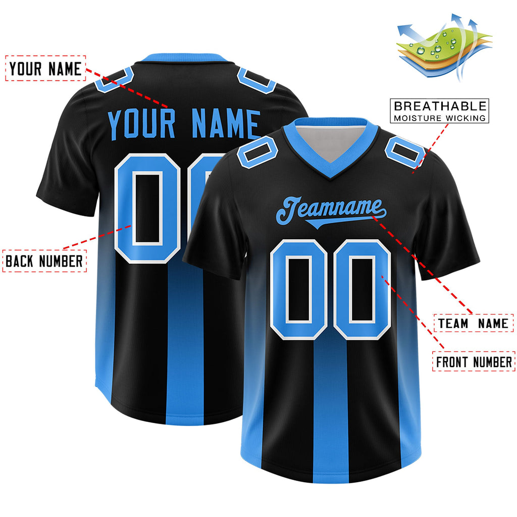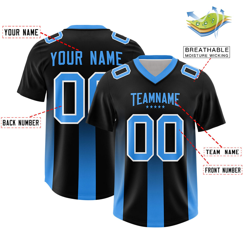 Custom Black Light Blue Vertical Width Stripe Gradient Fashion Personalized Team Football Jersey