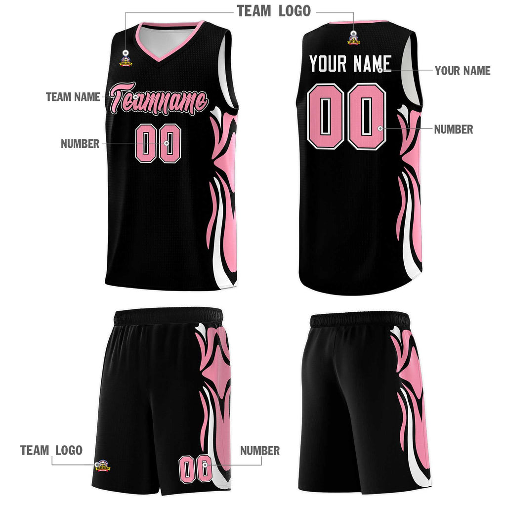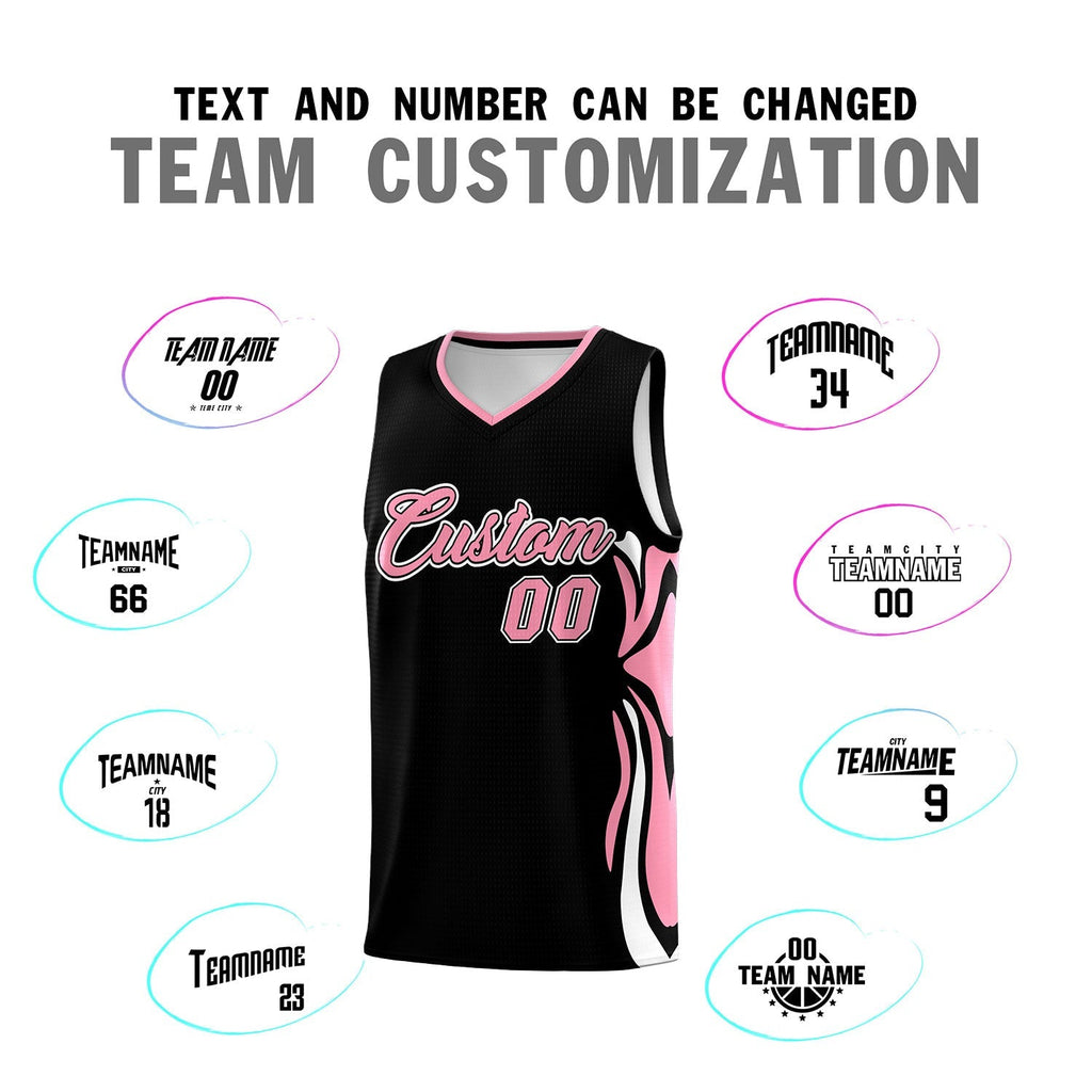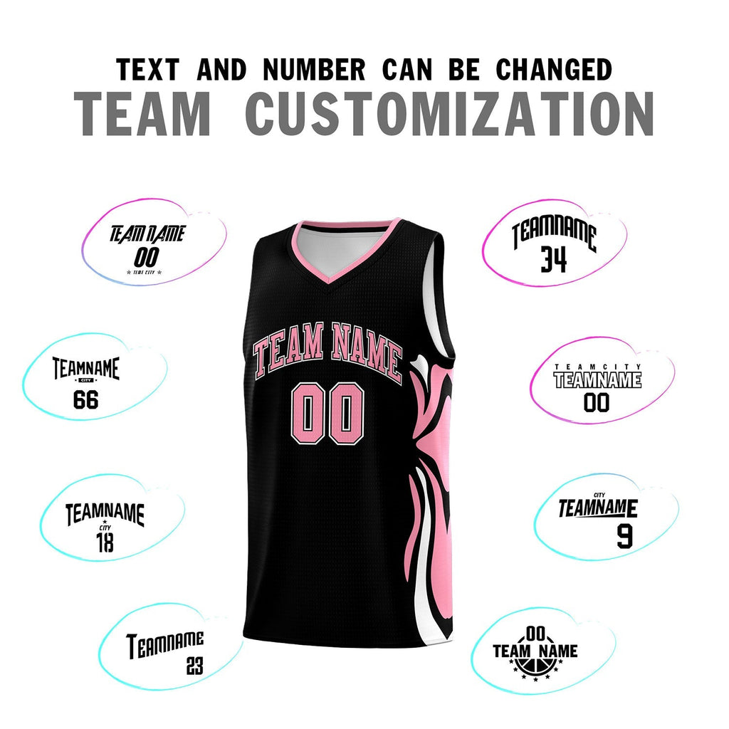 Custom Black Light Pink-White Graffiti Pattern Side Curve Pattern Sports Uniform Basketball Jersey Sets