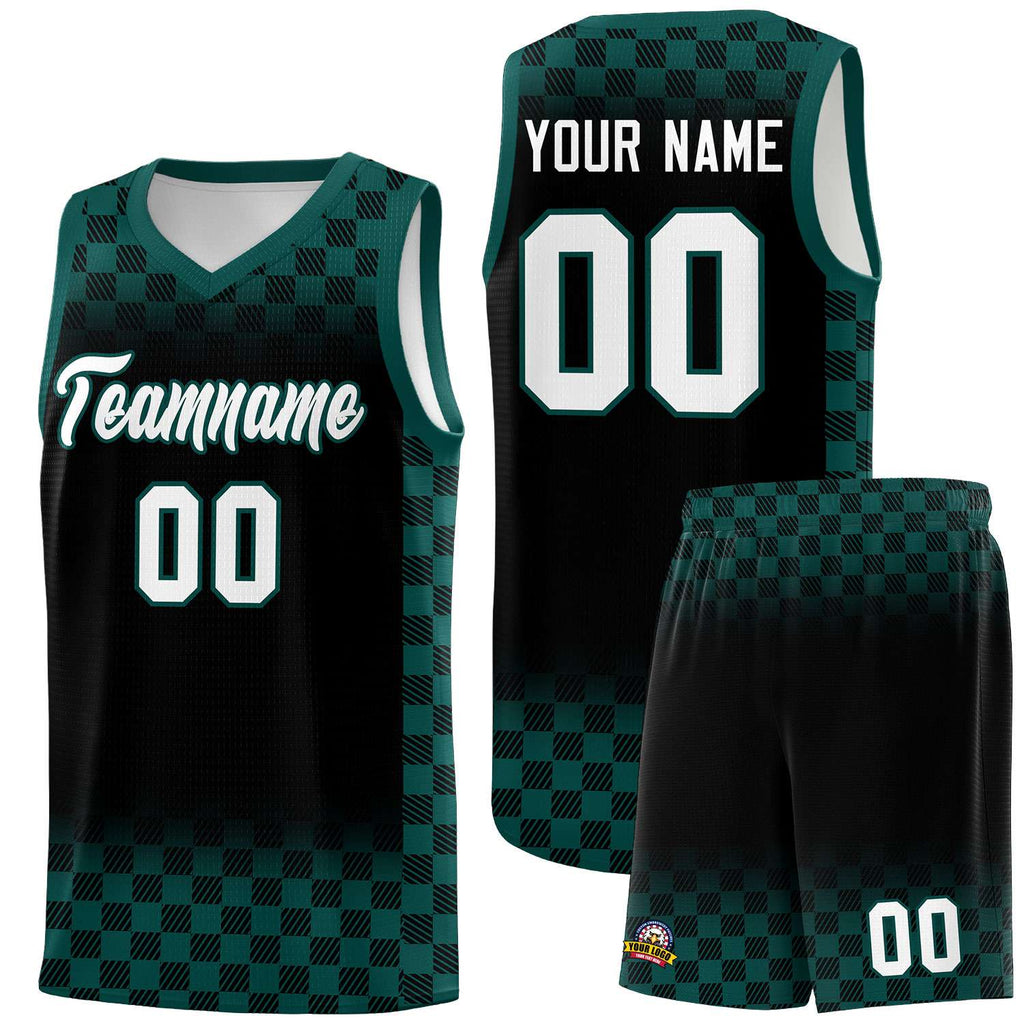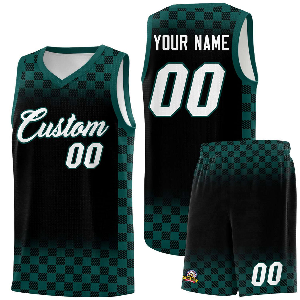 Custom Black Midnight Green Classic Plaid Pattern Sports Uniform Basketball Jersey