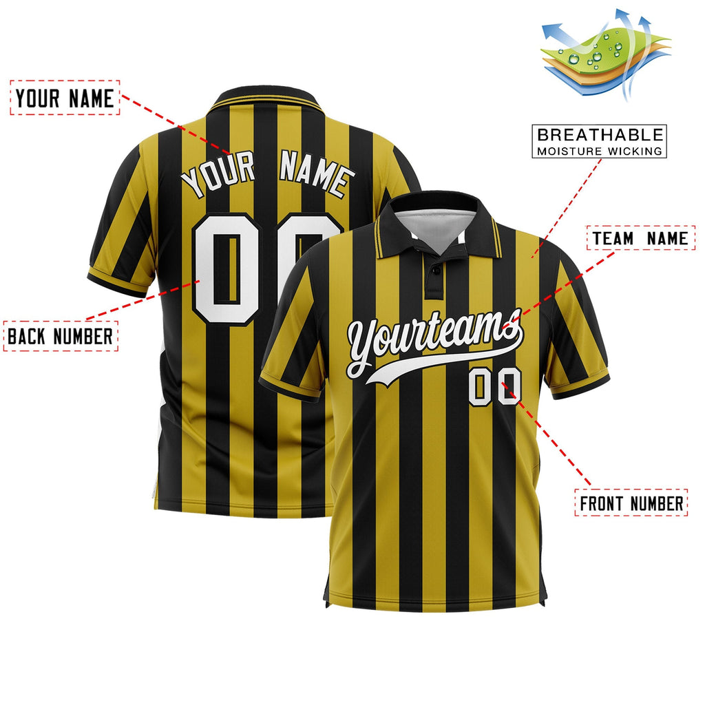 Custom Black Old Gold Vertical Stripes Design Performance Polo Shirt