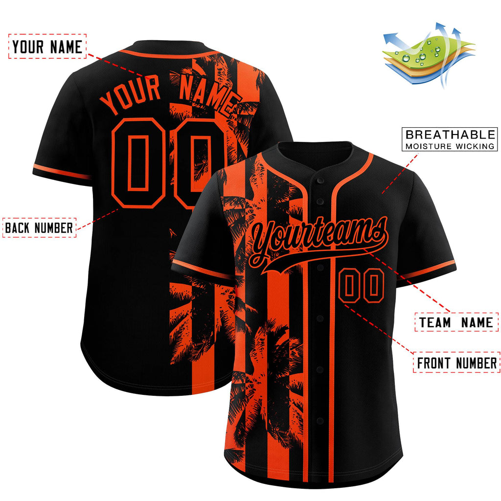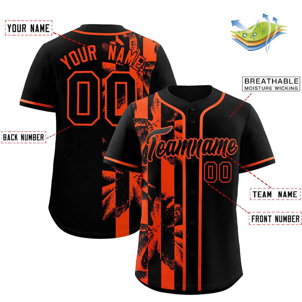 Custom Black Orange Split Fashion Coconut Tree Design Authentic Baseball Jersey
