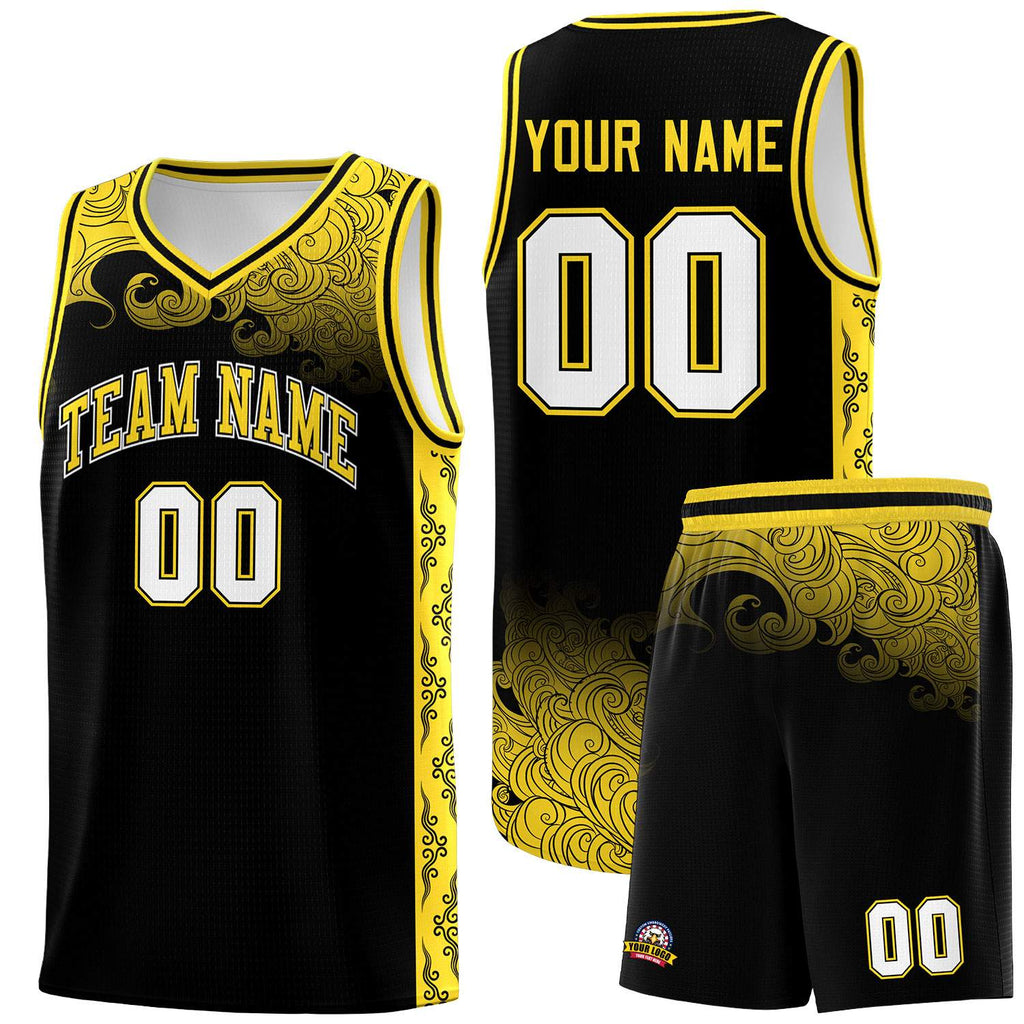 Custom Black Personalized Cloud Pattern Sports Sets Uniform Basketball Jersey