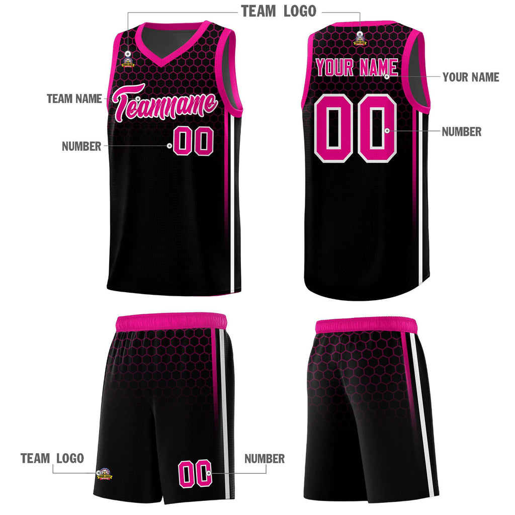 Custom Black Personalized Honeycomb Pattern Sports Uniform Basketball Jersey