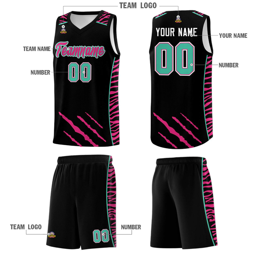 Custom Black Personalized Tiger Claw Pattern Sports Uniform Basketball Jersey