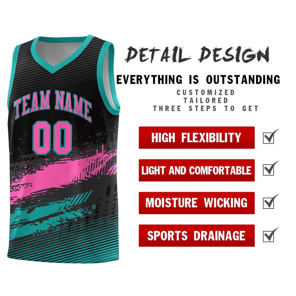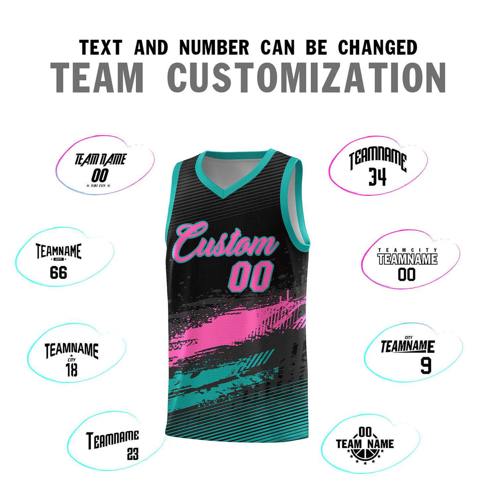 Custom Black Pink and Aqua Graffiti Pattern Sports Uniform Basketball Jersey