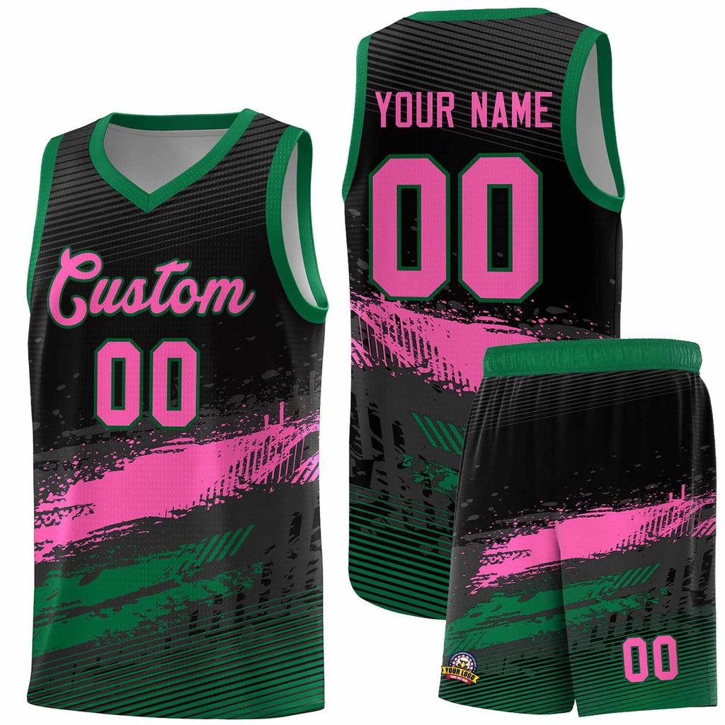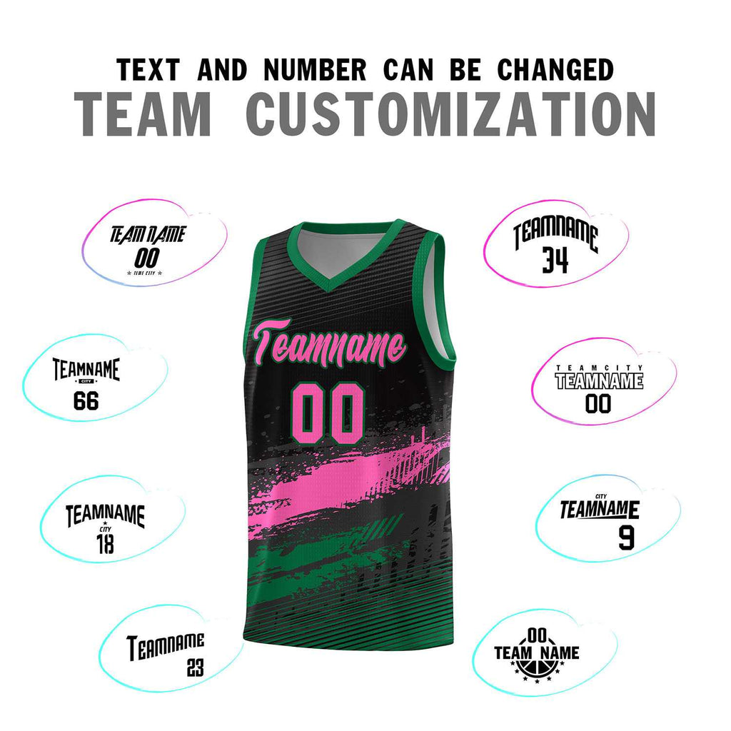 Custom Black Pink and Kelly Green Graffiti Pattern Sports Uniform Basketball Jersey