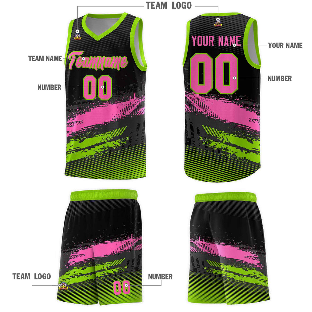 Custom Black Pink and Neon Green Graffiti Pattern Sports Uniform Basketball Jersey