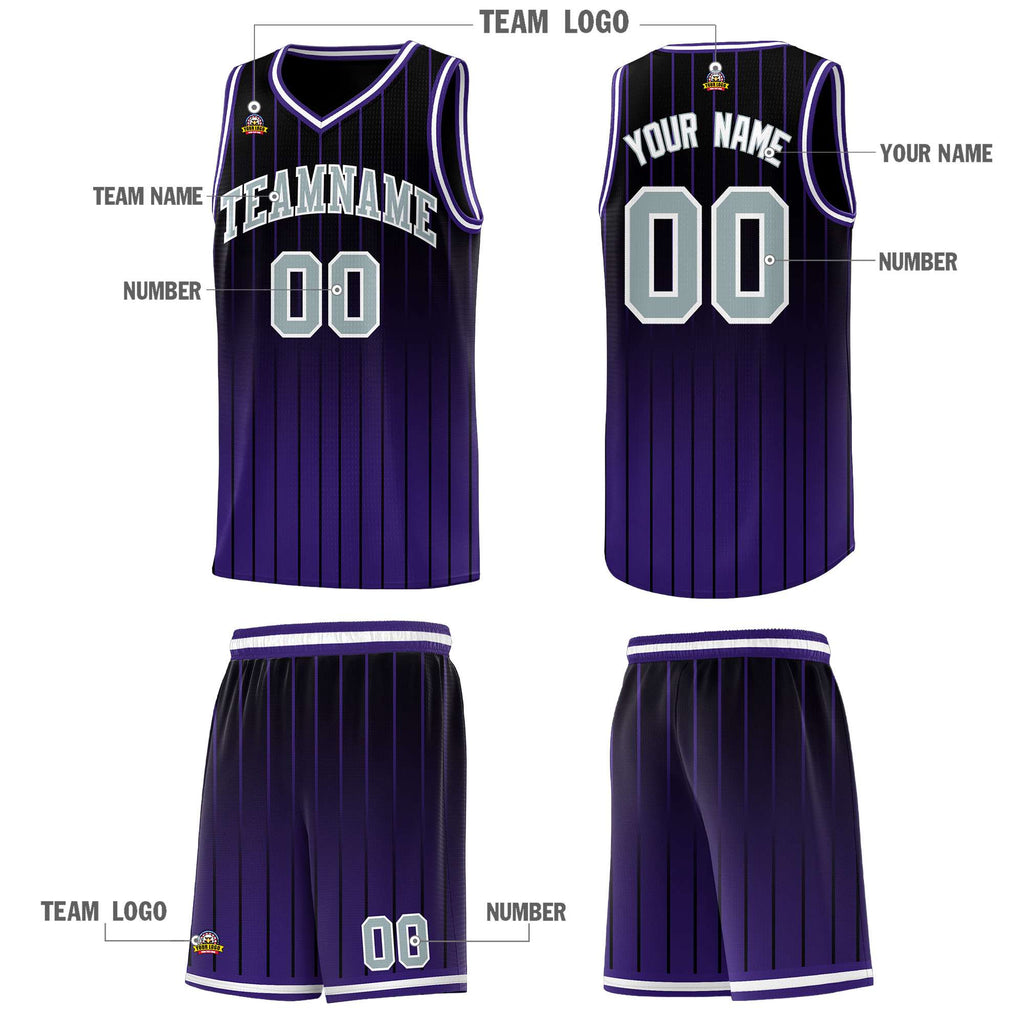 Custom Black Purple Gradient Fashion Sets Sports Stripe Uniform Basketball Jersey