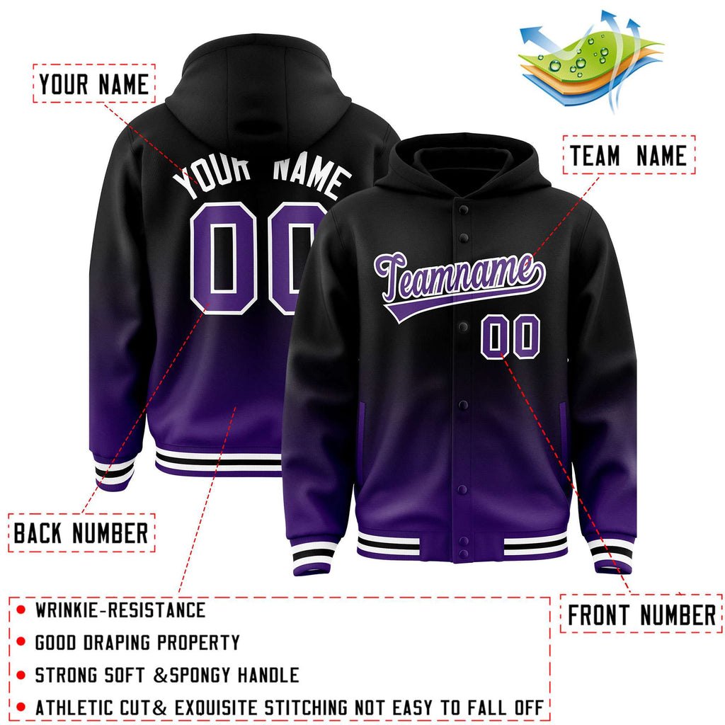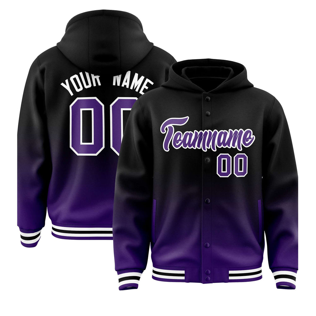 Custom Black Purple Varsity Full-Snap Letterman Gradient Jacket Hoodie