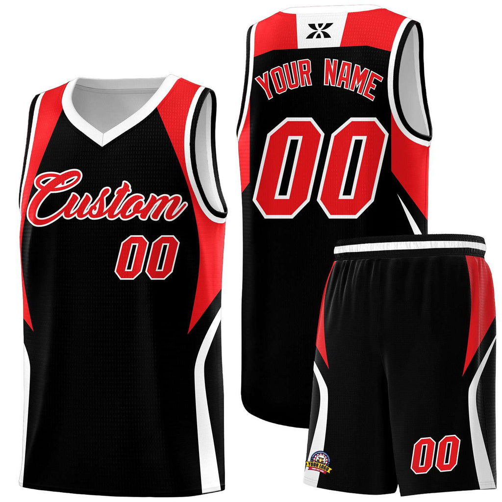 Custom Black Red and White Color Block Sports Uniform Basketball Jersey
