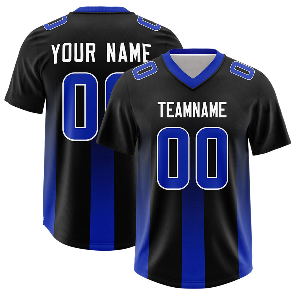 Custom Black Royal Vertical Width Stripe Gradient Fashion Personalized Team Football Jersey