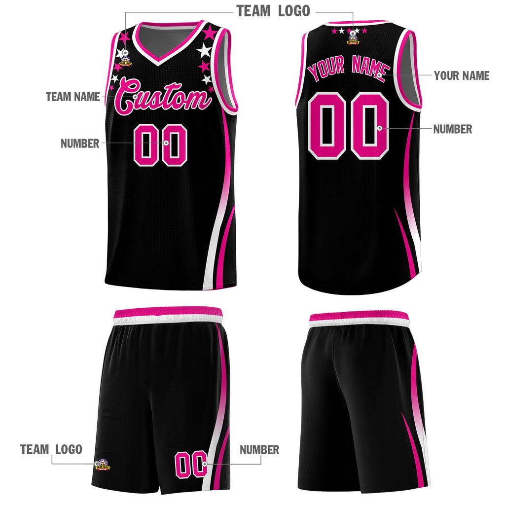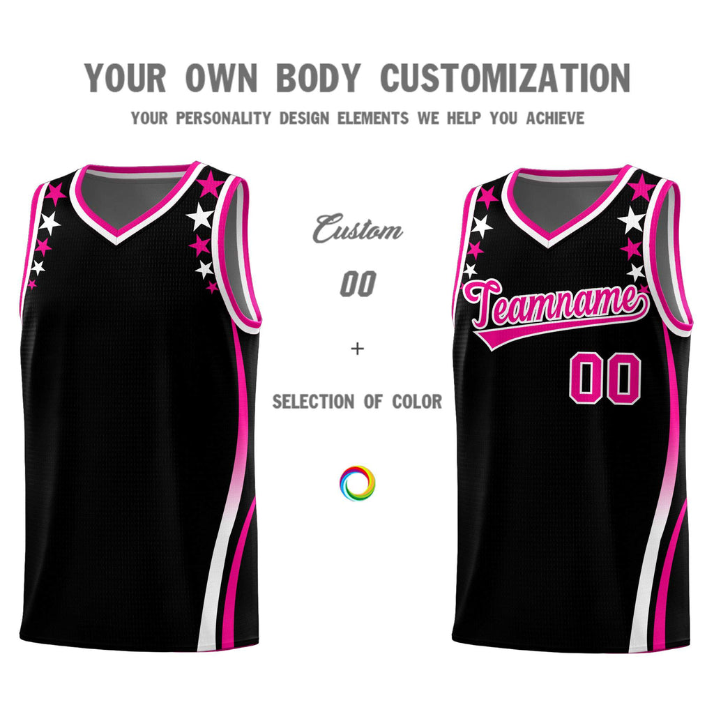 Custom Black Shoulders Star Pattern Side Color Block Sports Uniform Basketball Jersey