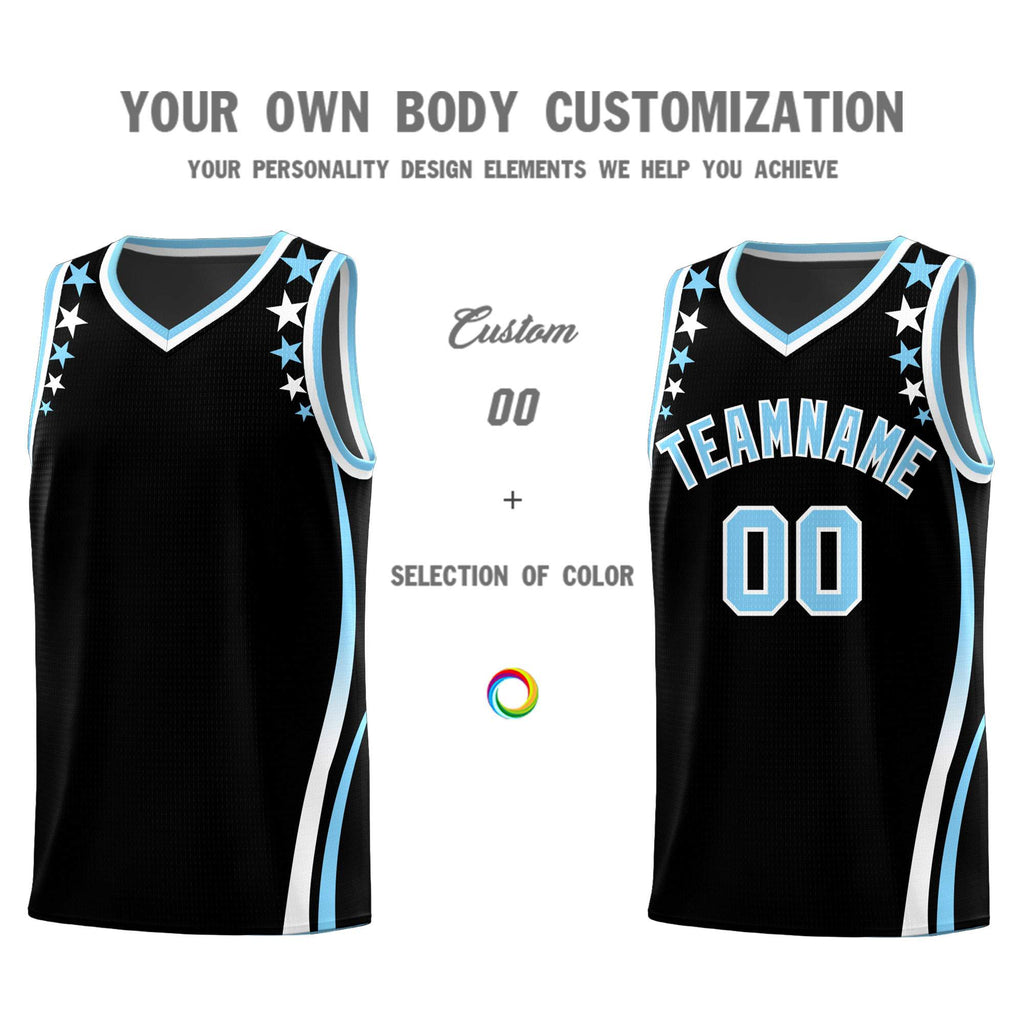 Custom Black Shoulders Star Pattern Side Color Block Sports Uniform Basketball Jersey