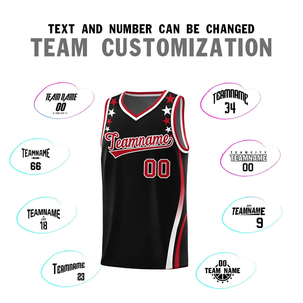 Custom Black Shoulders Star Pattern Side Color Block Sports Uniform Basketball Jersey