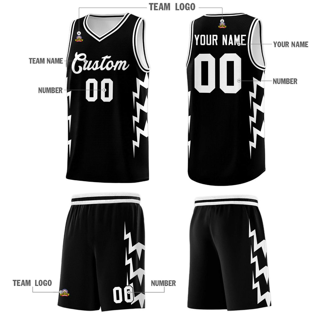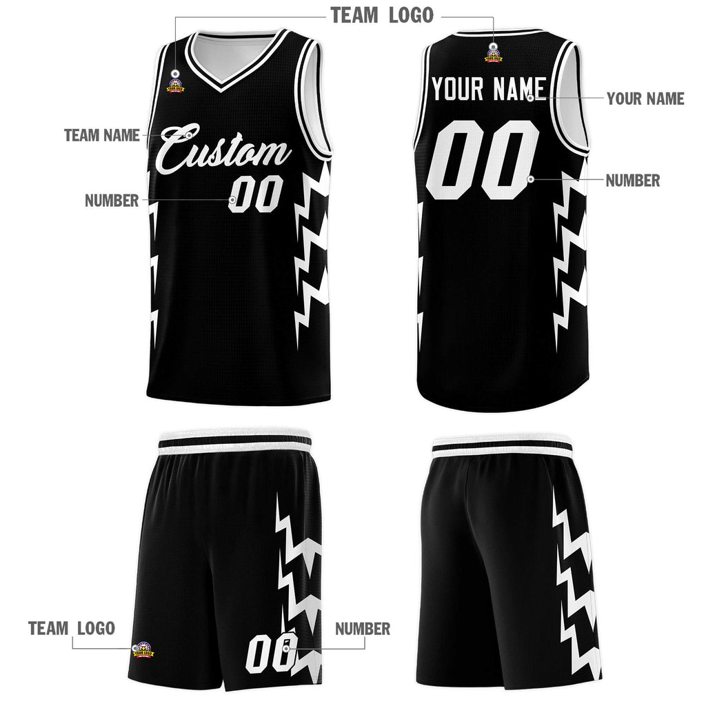 Custom Black Side Lightning Pattern Sports Uniform Basketball Jersey