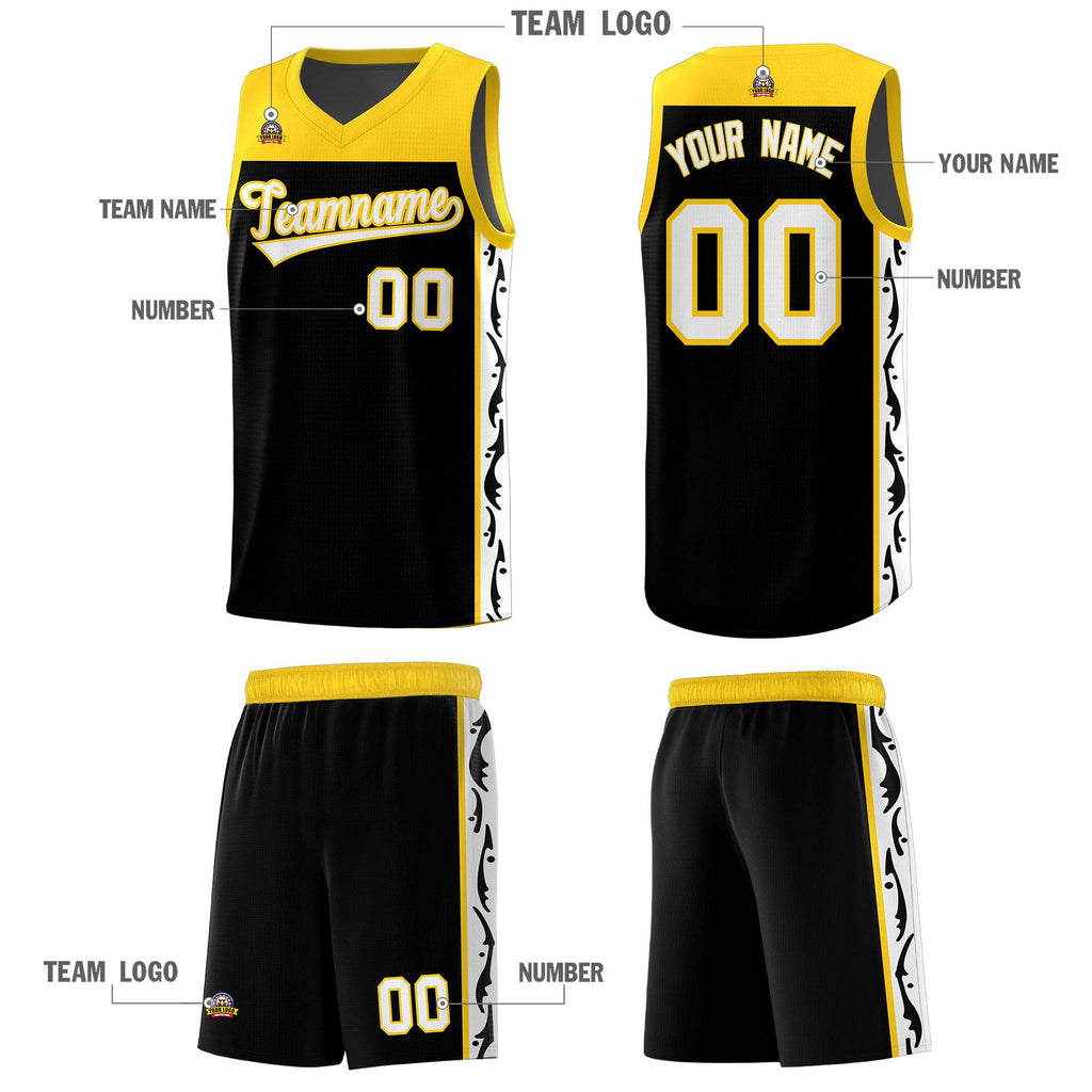 Custom Black Side Pattern Sports Uniform Basketball Jersey