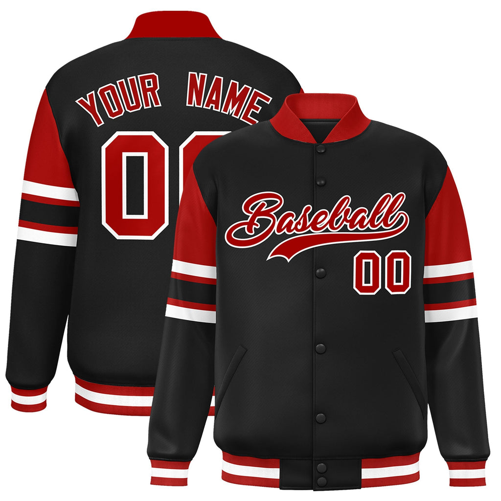 Custom Black Varsity Full-Snap Color Block Letterman Jacket