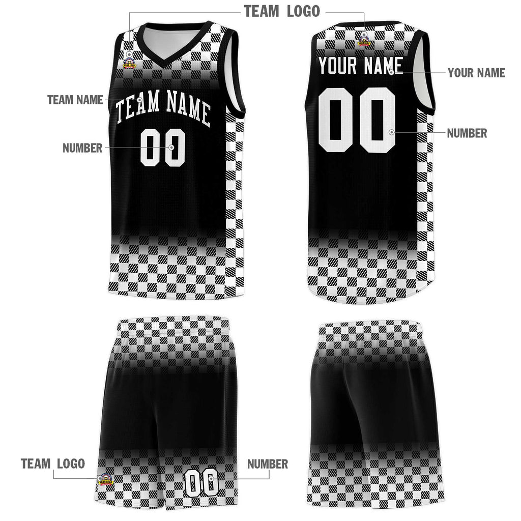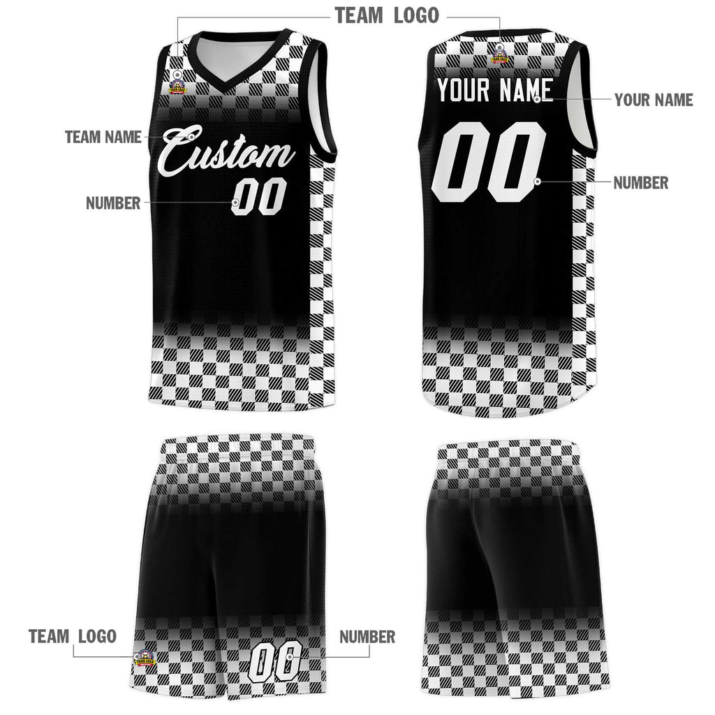 Custom Black White Classic Plaid Pattern Sports Uniform Basketball Jersey
