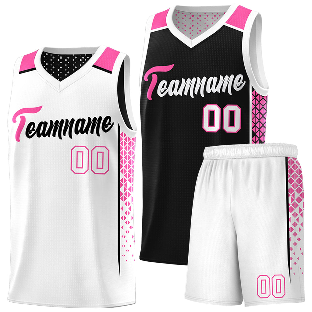 Custom Black White Side Gradient Patttern Double Side Sports Uniform Basketball Jersey