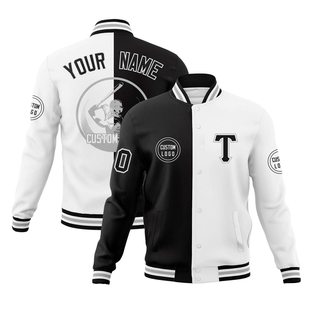 Custom Black White Varsity Full-Snap Split Letterman Baseball Jacket