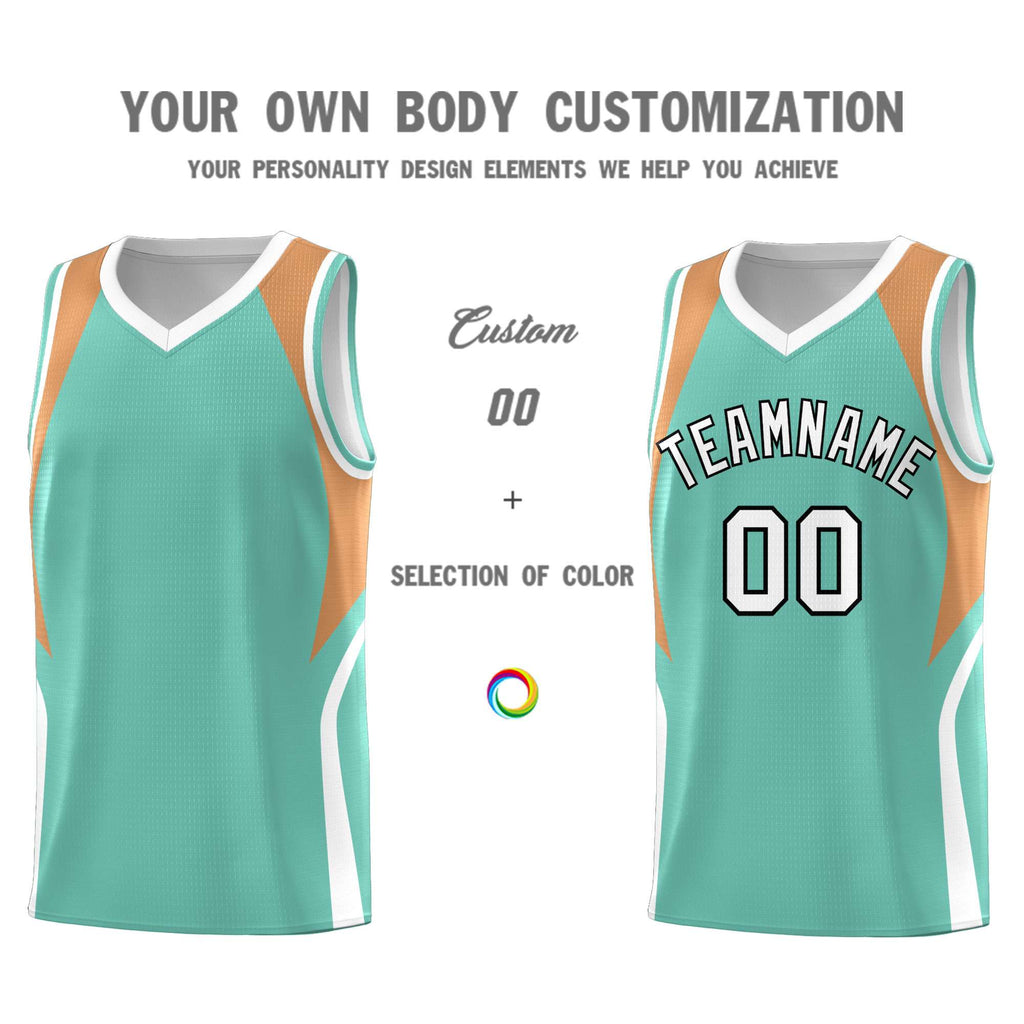 Custom Blue Buckskin Brown and White Color Block Sports Uniform Basketball Jersey