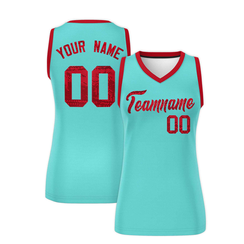 Custom Bright Green Red Women Basketball Jersey Sequined Dress