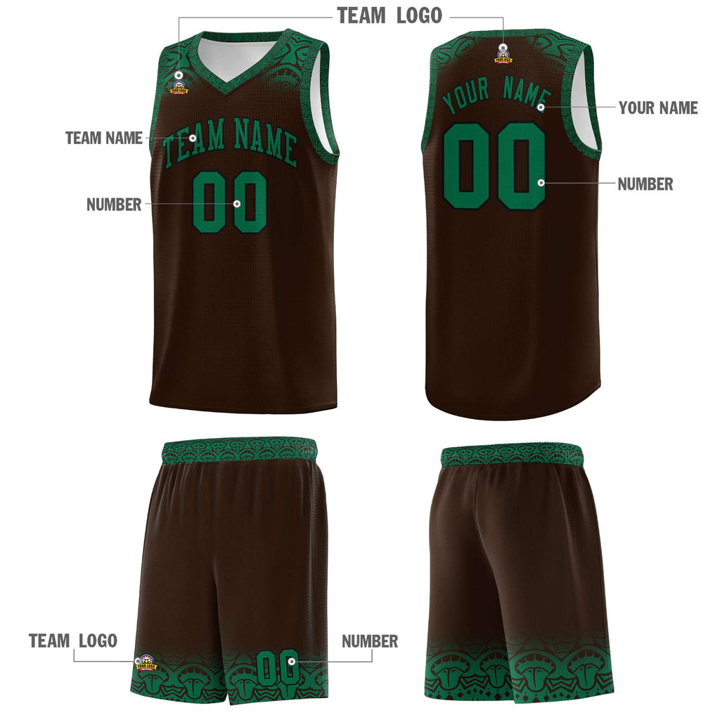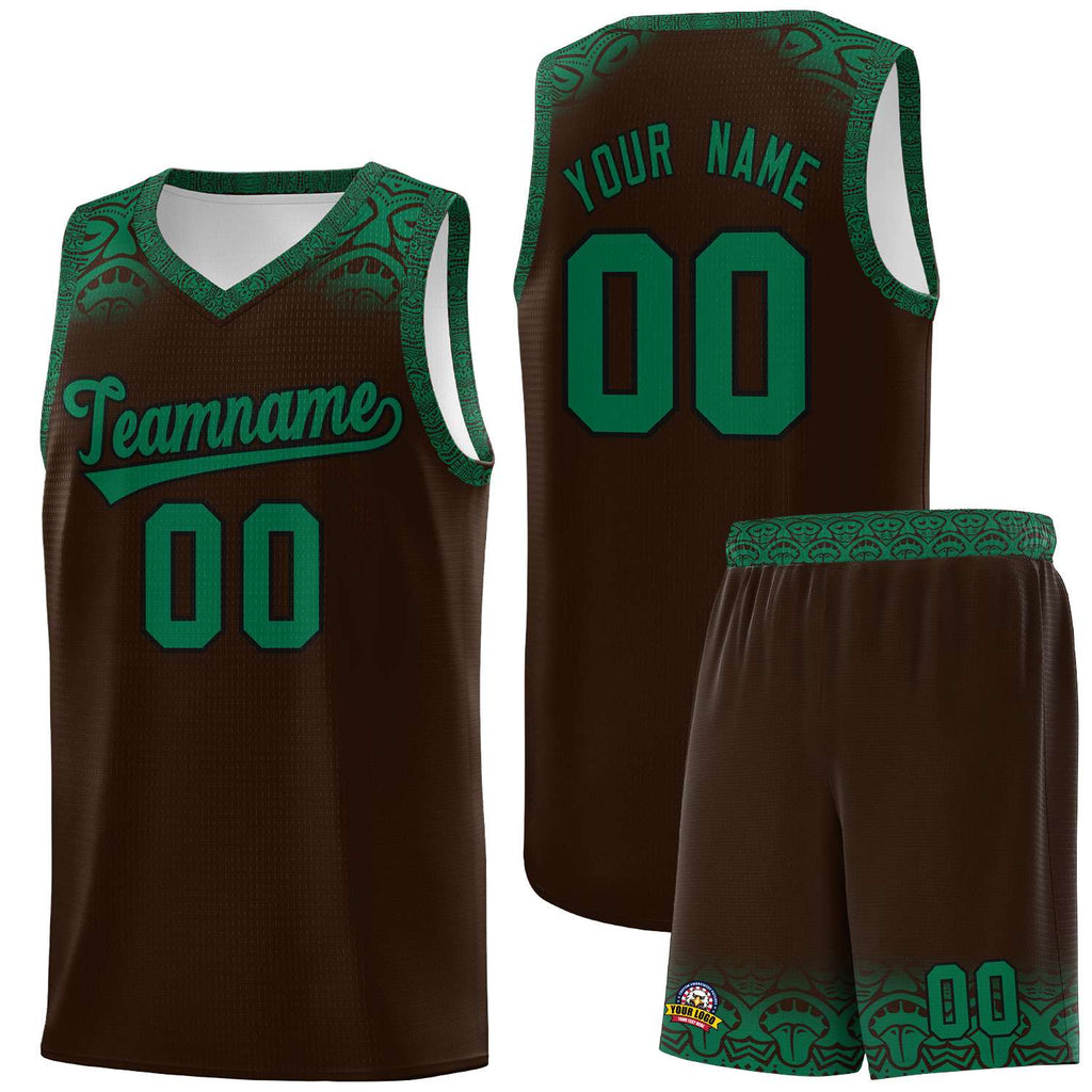 Custom Brown Kelly Green Personalized Indians Print Sets Sports Uniform Basketball Jersey