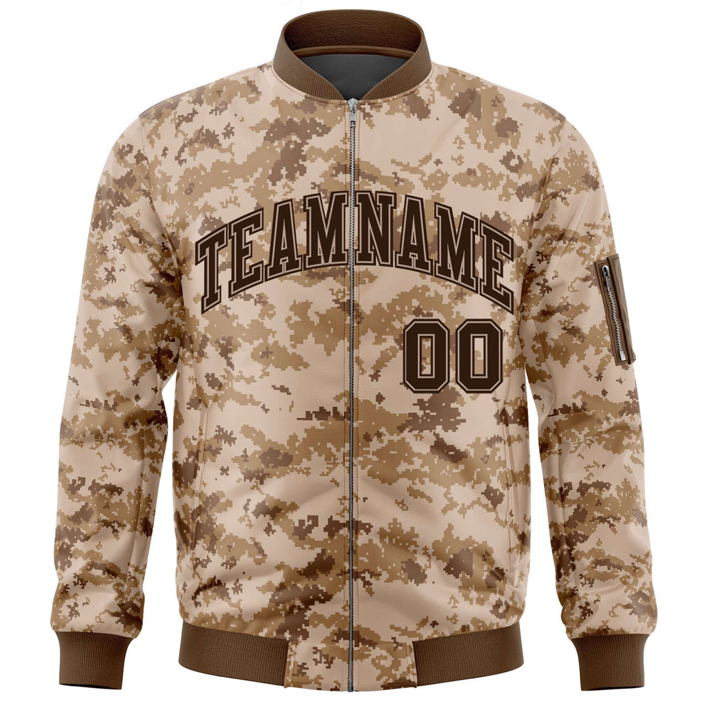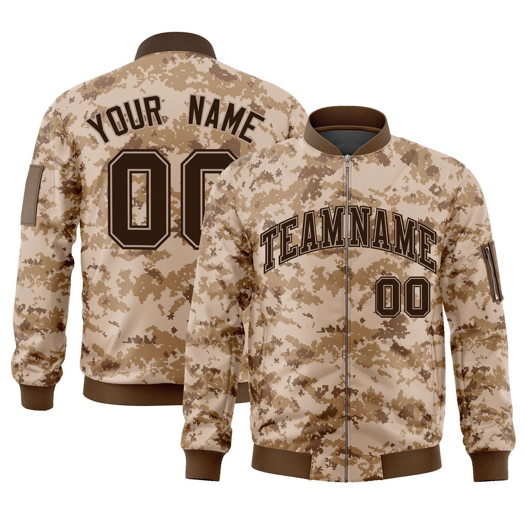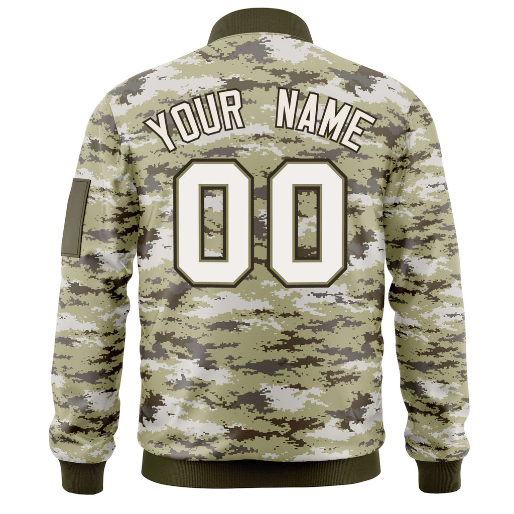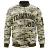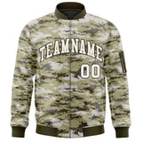 Custom Camo Full-Zip Casual Sweatshirt Letterman Bomber Coats Stitched Letters Logo Fashion College Jacket for Adult/Youth