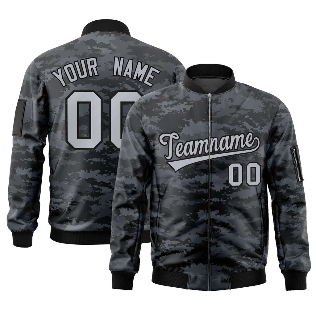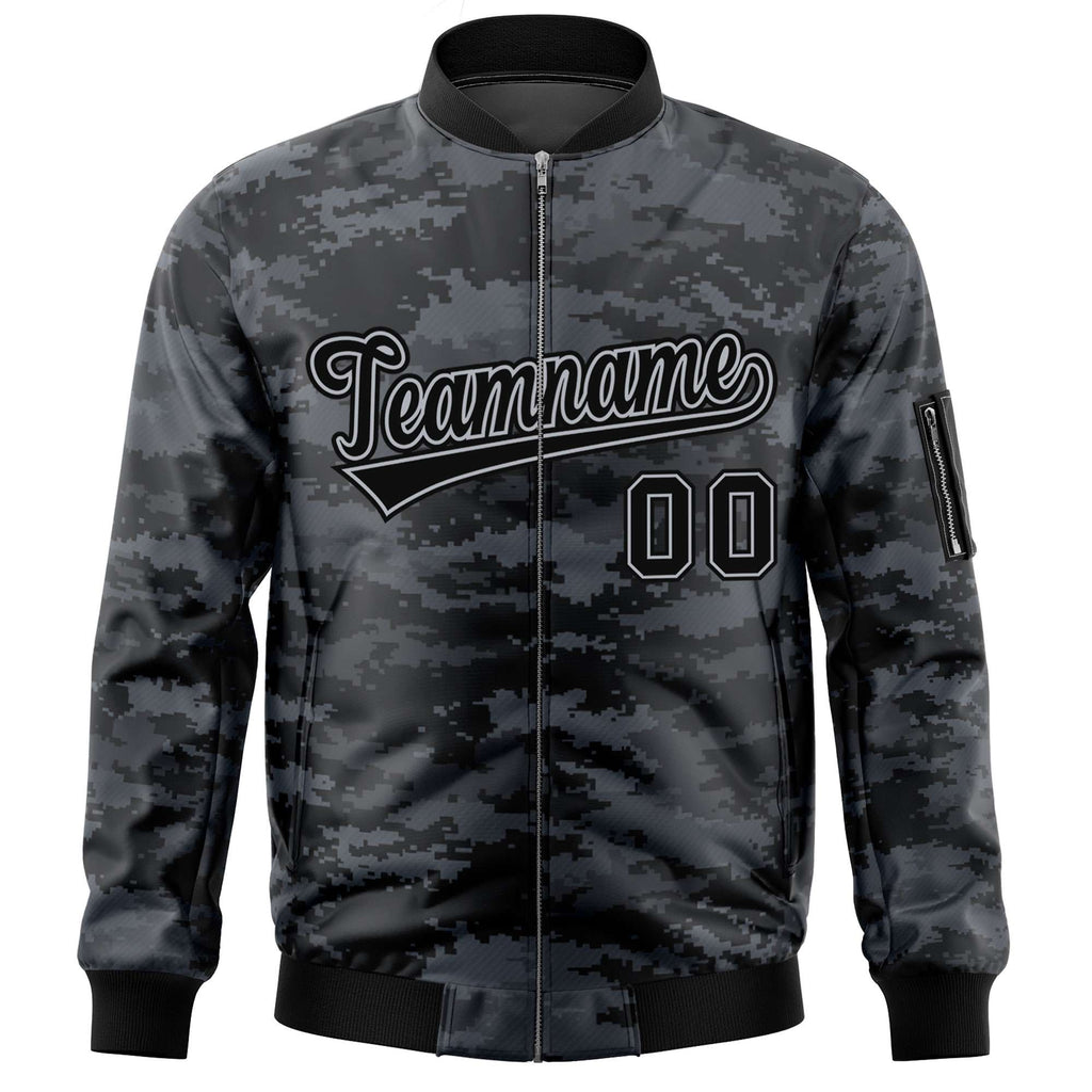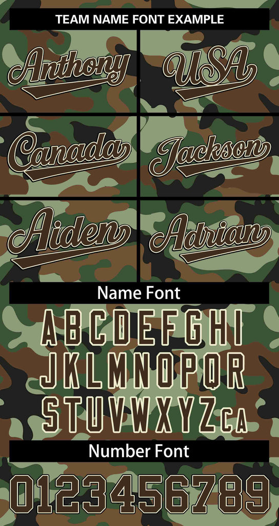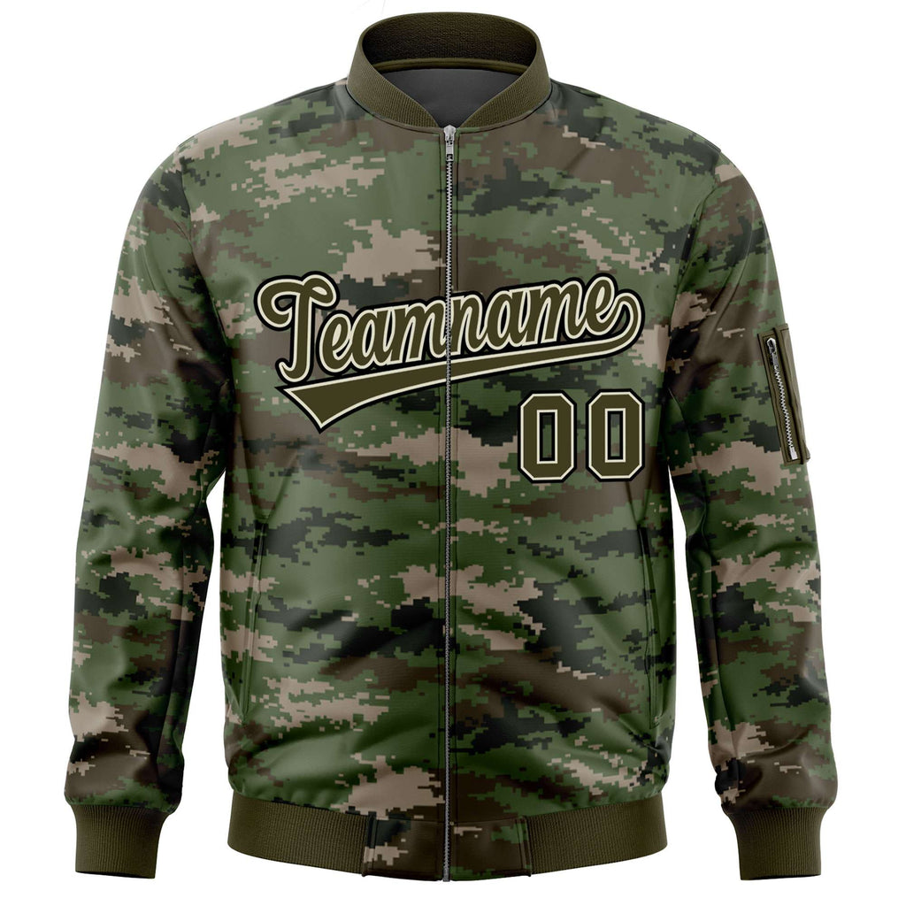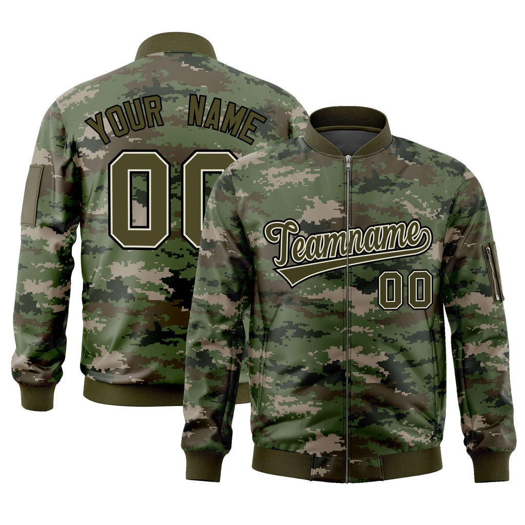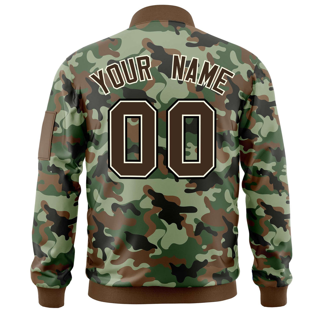 Custom Camo Full-Zip Personalized Baseball Letterman Jackets Stitched Text Logo for Adult/Youth Big Size