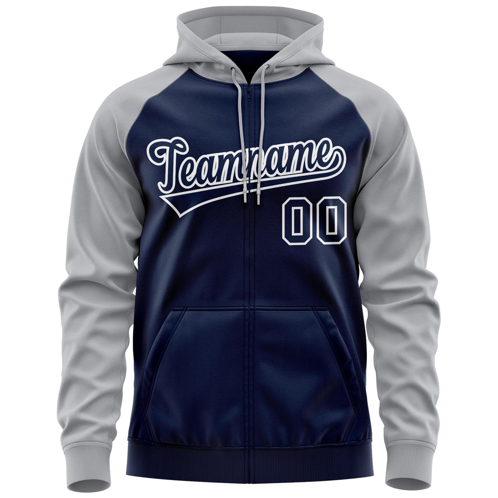 Custom Cotton Full-Zip Raglan Sleeves Hoodie Unisex Personalized Couples Sport Sweatshirt