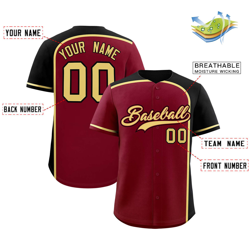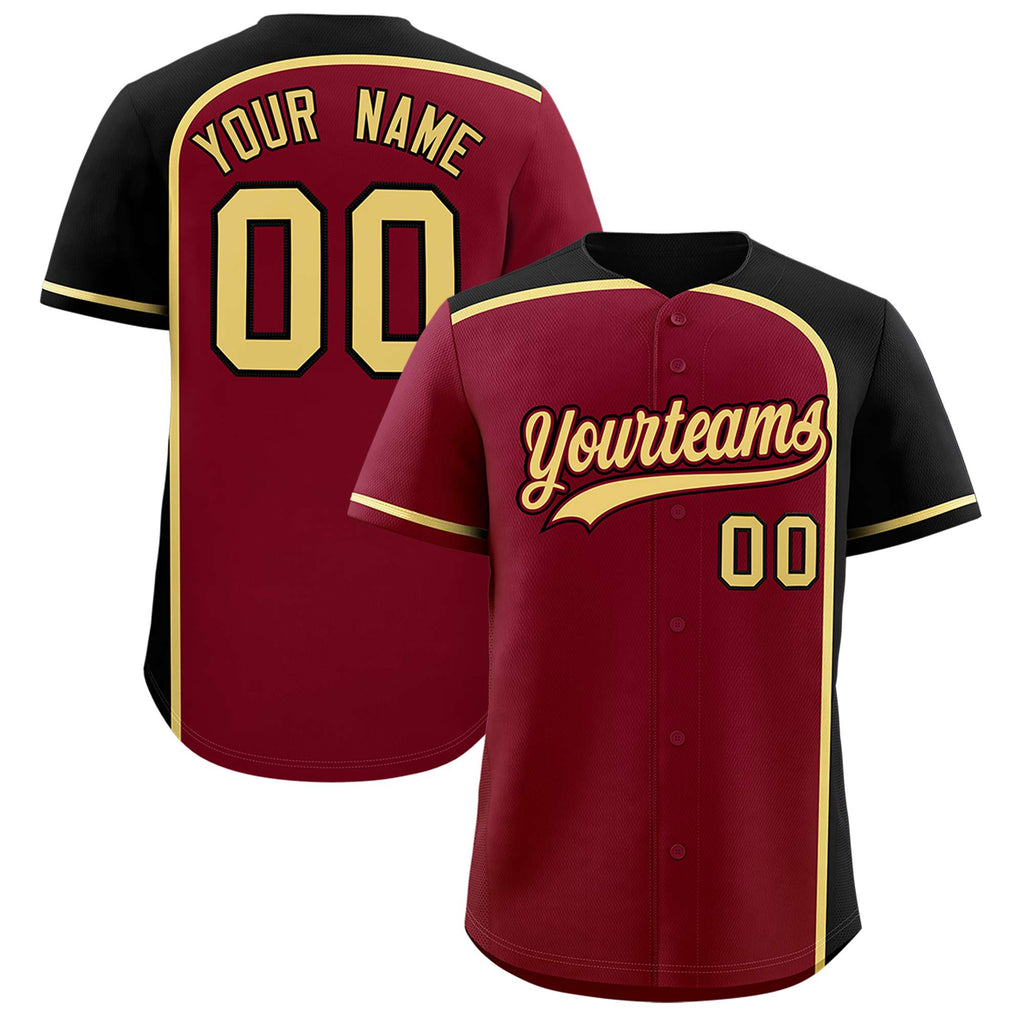 Custom Crimson Black Personalized Color Block Authentic Baseball jersey