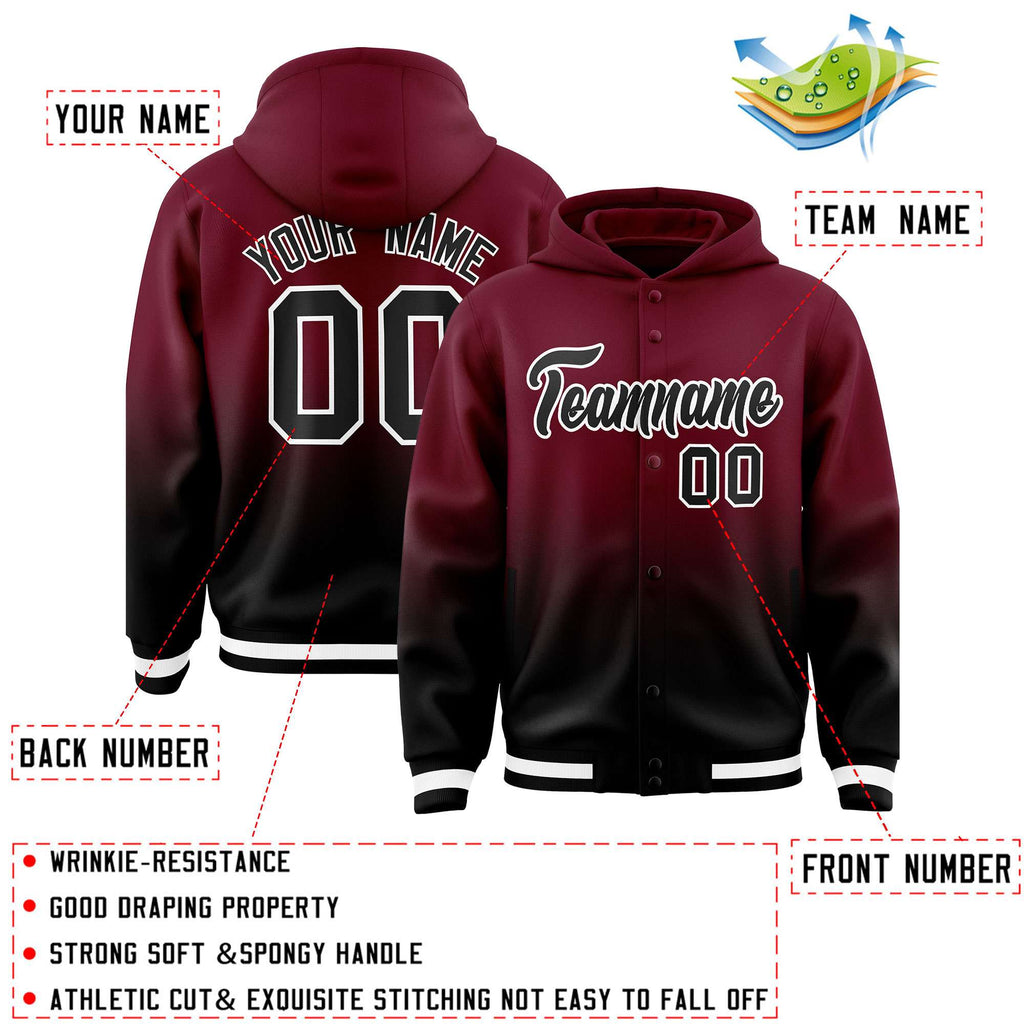 Custom Crimson Black Varsity Full-Snap Letterman Gradient Jacket Hoodie
