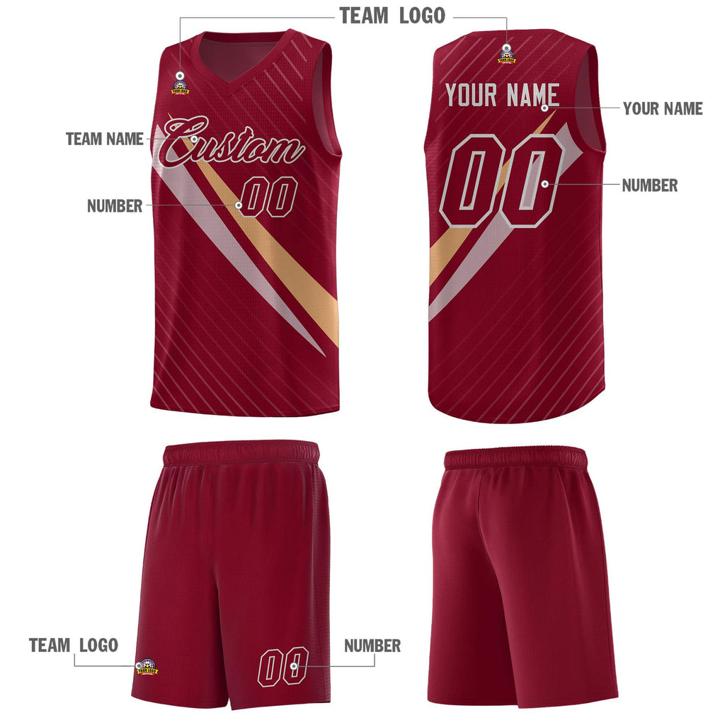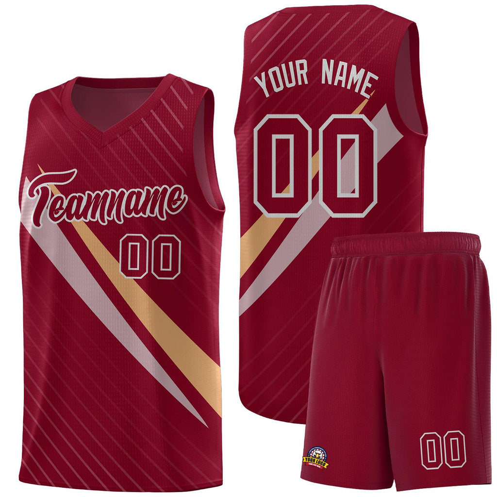 Custom Crimson Diagonal Pinstripe Pattern Color Block Sports Uniform Basketball Jersey