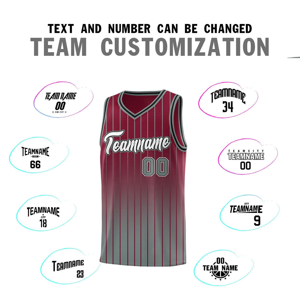 Custom Crimson Gray Gradient Fashion Sets Sports Stripe Uniform Basketball Jersey